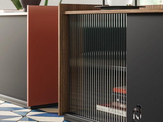 Vyrobena z nejkvalitnějších materiálů, skříňka Pixi vyzařuje eleganci a krásu. Její dveře jsou promyšlenou kombinací typického skla cannettato ze šedesátých let a dýhy v plátech Canaletto, což vytváří jedinečný a stylový vzhled. Toto cenné zpracování činí skříňku nejen praktickým nábytkem, ale také estetickým uměleckým dílem.