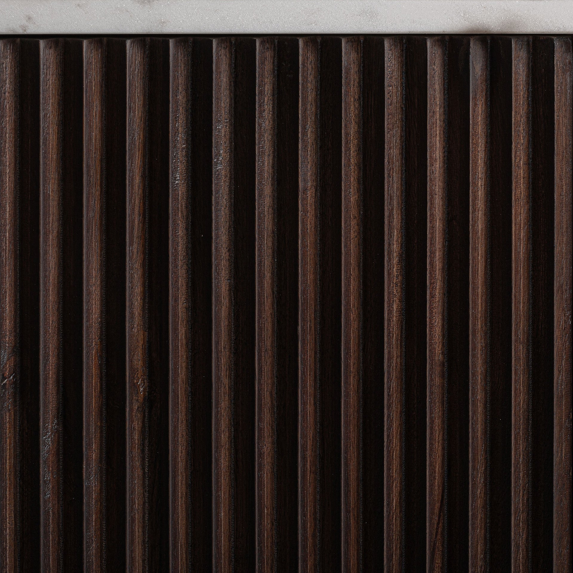 Díky promyšlené konstrukci, moderní RTV skříňka nabízí ideální spojení estetiky a praktičnosti. Ruční zpracování zajišťuje, že každý kus má jedinečný charakter - přírodní rozdíly ve struktuře dřeva a mramoru podtrhují jeho autentičnost. Je to výjimečná dřevěná RTV skříňka, která se skvěle hodí do elegantních a stylových interiérových aranžmá.