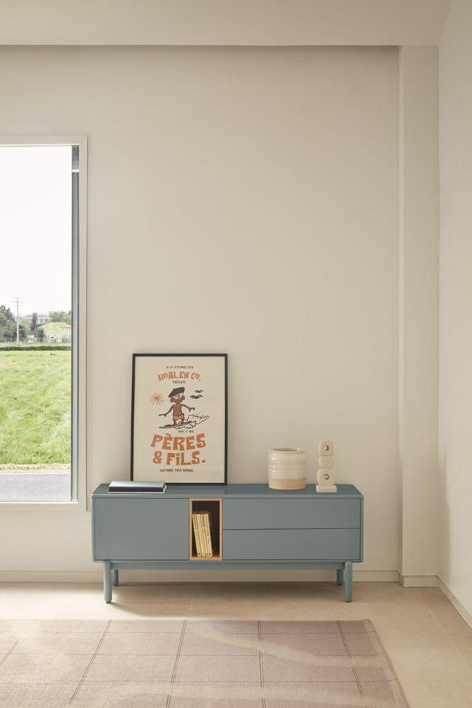 Jemné, minimalistické nožky dodávají celé konstrukci lehkost a výrazná šedá barva se skvěle hodí k různorodým aranžmá interiérů. Pokud hledáte stylovou a funkční malou RTV skříňku do svého obývacího pokoje, Corvo bude skvělou volbou.