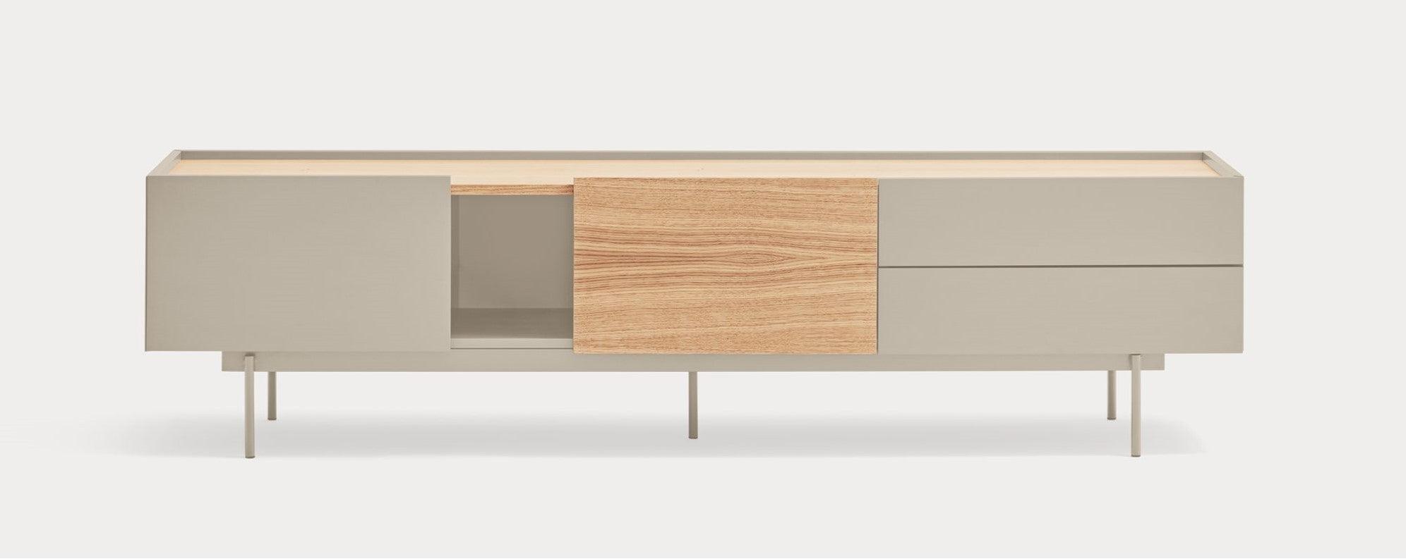Televizní stolek Otto je navíc vybaven dvěma zásuvkami, což zajišťuje další funkčnost a místo pro uskladnění různých drobností. Skvěle se hodí do obývacího pokoje jako základna pro uskladnění audio-vizuální techniky a jako designový prvek interiéru. Televizní stolek nejenže plní praktickou funkci, ale také dodává styl a charakter místnosti, vytváří příjemnou atmosféru pro sledování televize a relaxaci.