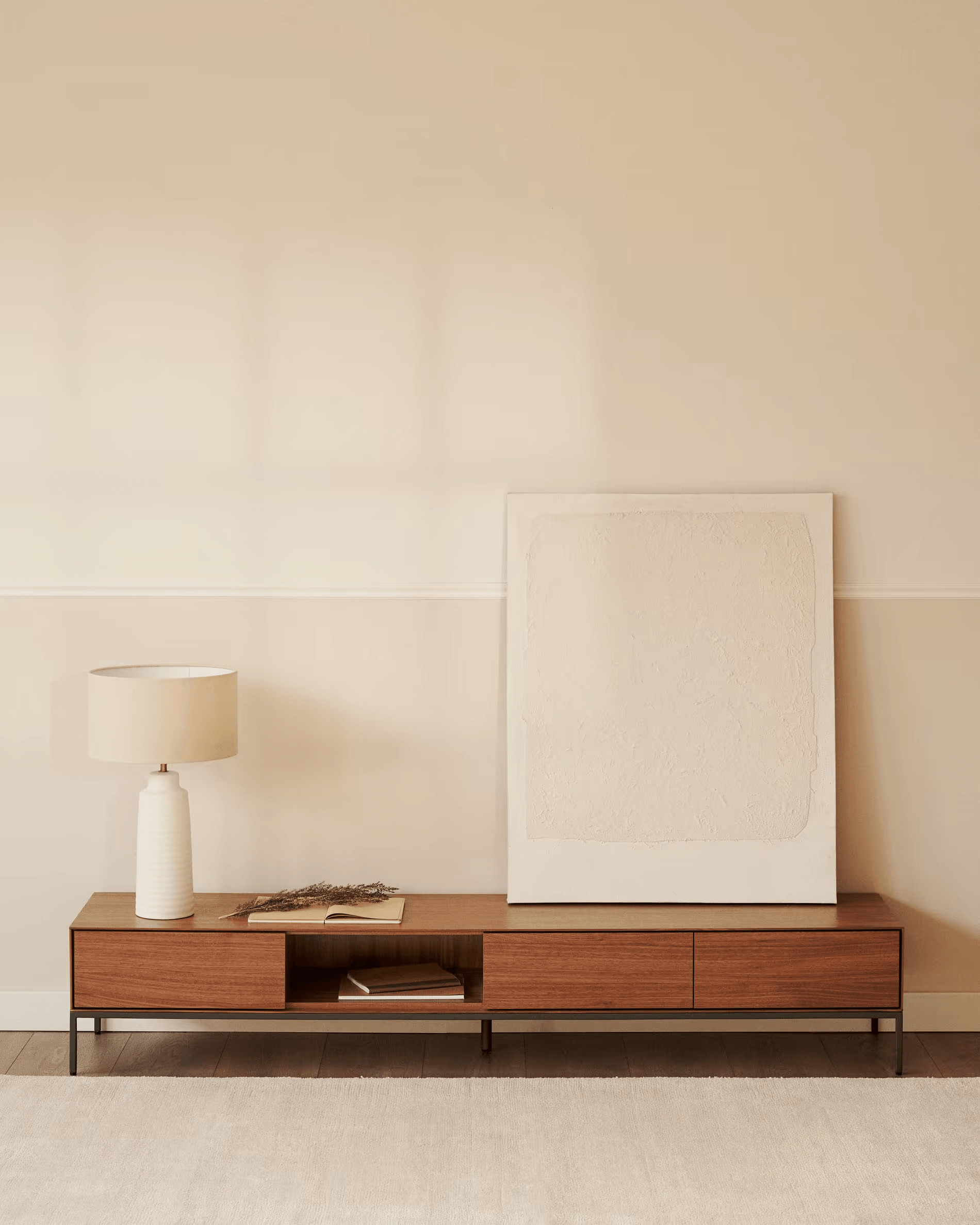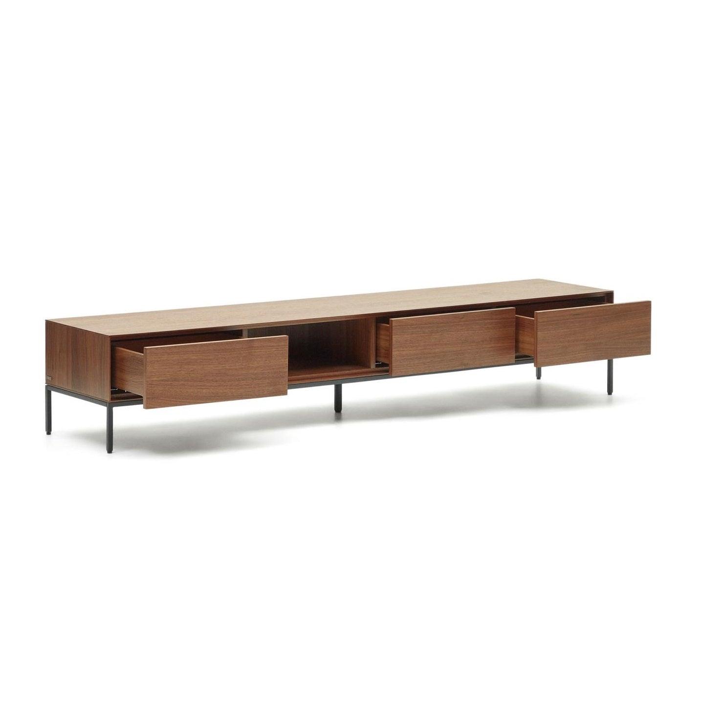 RTV skříň Vedrana, vytvořená zkušeným designérským týmem La Forma, představuje dokonalou harmonii mezi ořechovým dýhou a ocelí, čímž vytváří jedinečné spojení funkčnosti a estetiky. Tato unikátní kombinace materiálů činí Vedranu ideální pro různé typy domů a styly interiéru, zdůrazňující jejich eleganci a modernost.