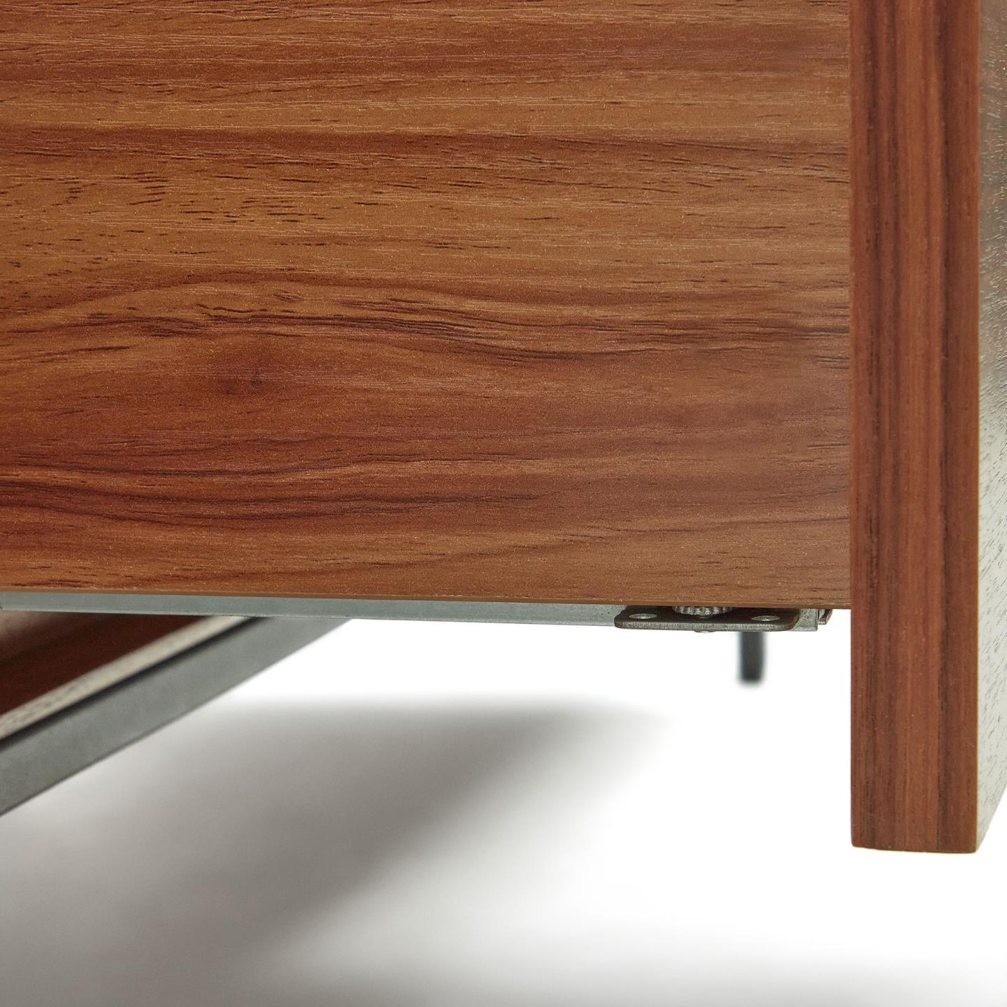 Ořechová dýha dodává kolekci Vedrana jemný, moderní charakter, zatímco skříňky z této řady se skvěle kombinují s různými barvami a vzory, což je činí univerzálními pro různé interiérové aranžmá. Ocel na druhé straně dodává kolekci pevnost a odolnost, zajišťující nejen estetický design, ale také trvanlivost na dlouhá léta.