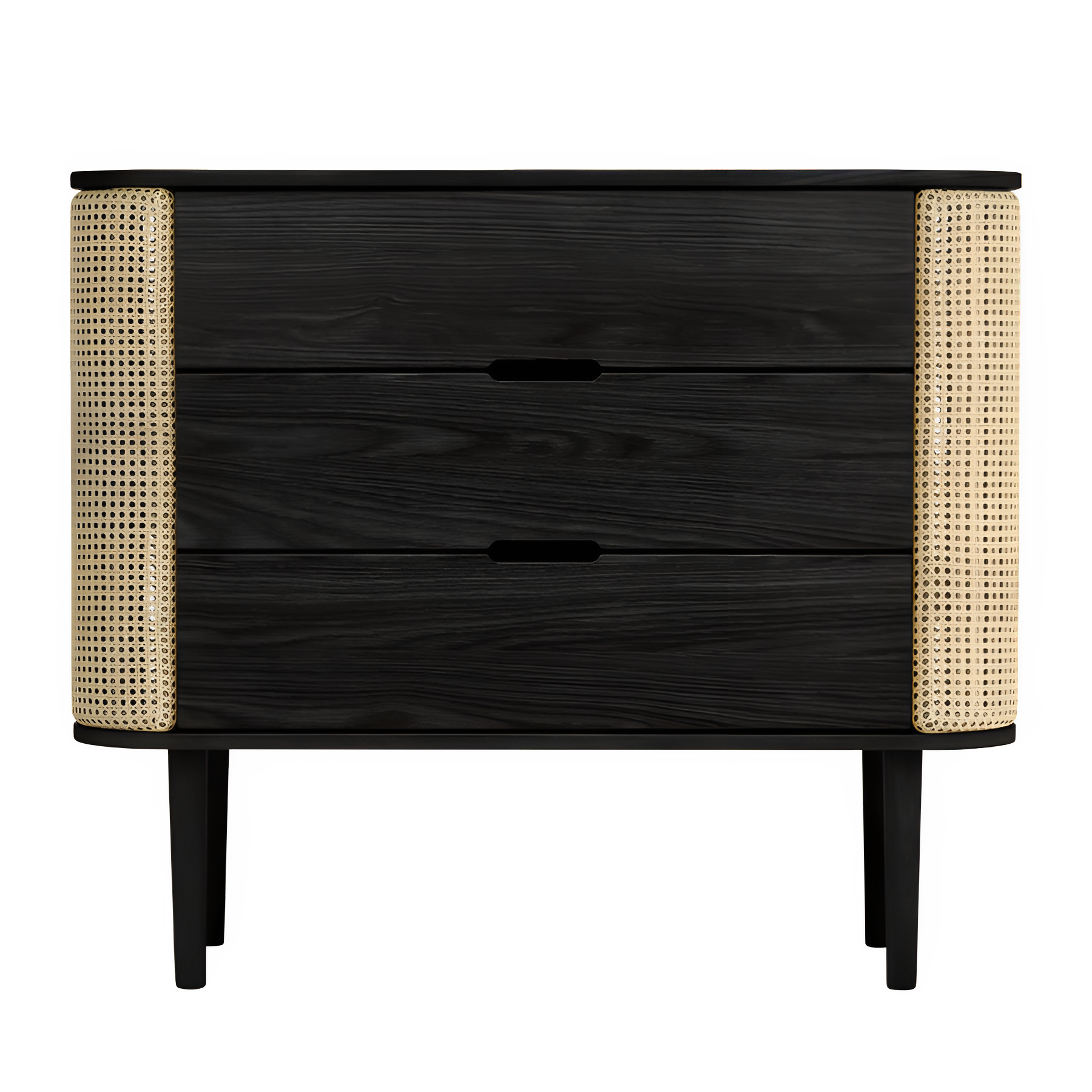 Dresser Treasures je elegantní a funkční skříňka, která spojuje jemné křivky s praktickým úložným prostorem. Za zaoblenými bočními dvířky, otevírajícími se jako křídla, se skrývá místo na šperky a drobné předměty. Tři prostorné zásuvky bez úchytů poskytují prostor na svetry, stolní nádobí nebo kancelářské potřeby.