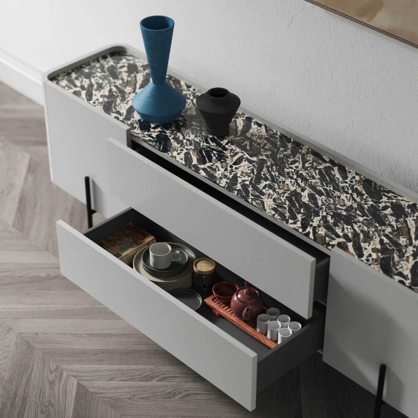 Objevte dokonalou kombinaci funkčnosti a estetiky ve skříňce se zásuvkami Caillou. Jeho zaoblené tvary, výběr desky a jedinečné detaily z něj činí nejen praktický kus nábytku, ale také krásné umělecké dílo. Dopřejte si luxusní akcent ve Vašem interiéru a užívejte si harmonii mezi formou a funkcí.