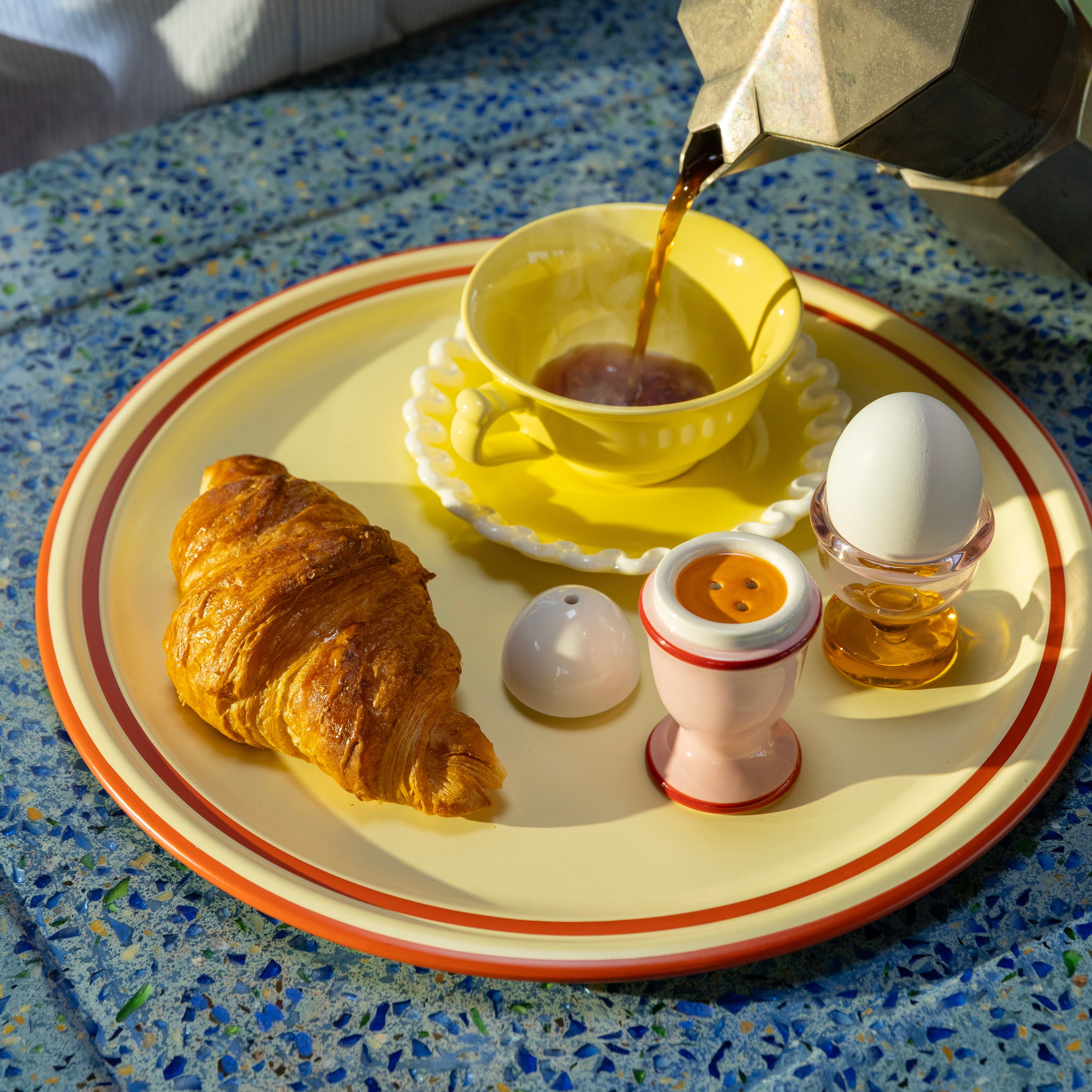 Podnosník Vano je barevná reinterpretace tradiční bistro soupravy, která přináší svěží, moderní akcent do každé aranžace stolu. Vyrobená z kovu a lisovaná z jednoho odlitku, má hladký, bezešvý povrch, což jí dodává eleganci a styl.