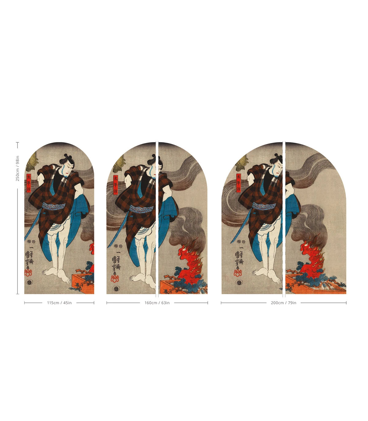 Mural flizelinowy w kształcie łuku SAMURAI SERENITY beżowy