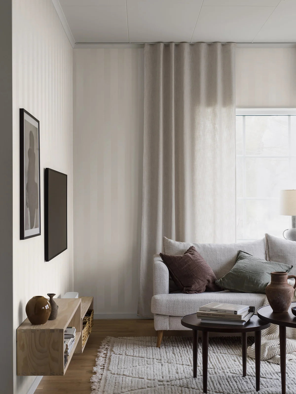 Tapeta Karl se skvěle hodí do obývacího pokoje, pracovny nebo předsíně, kde se stane výrazným, a přitom minimalistickým pozadím pro aranžmá. Její jednoduchá forma spojená s elegantním provedením dodává interiéru rafinovanost, přičemž zachovává klid a harmonii charakteristickou pro klasický styl.