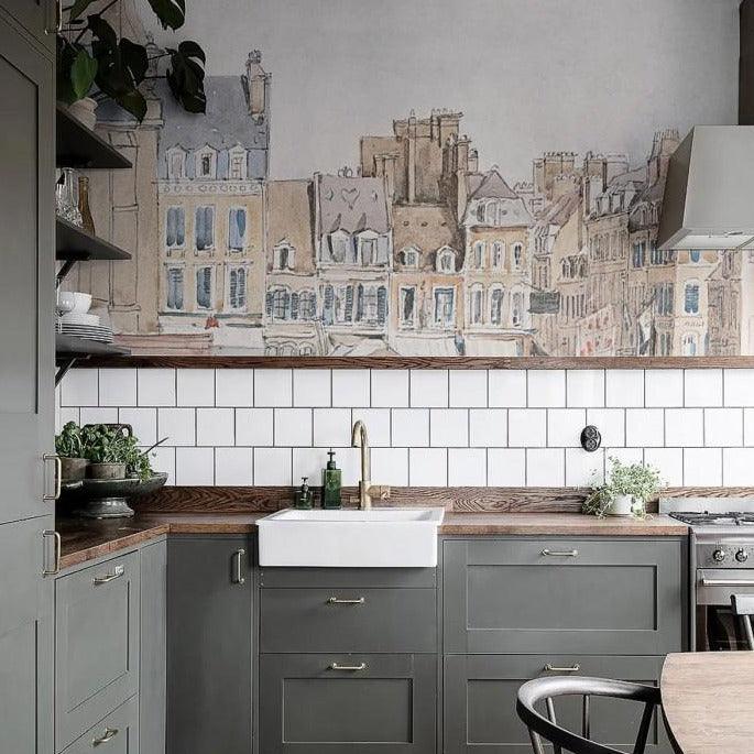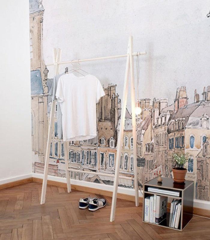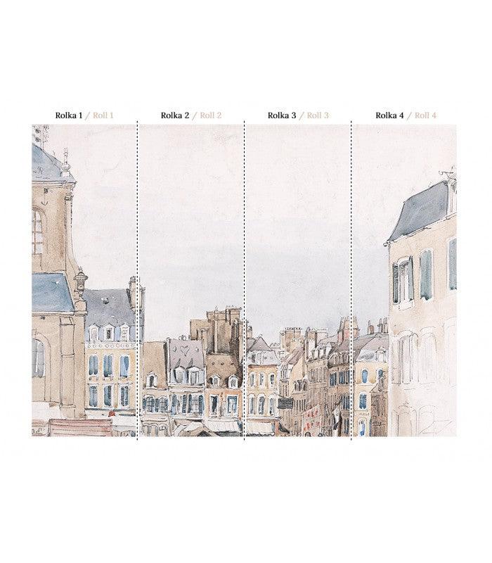 Vliesová tapeta s městskou krajinou ROOFS béžová s bílou