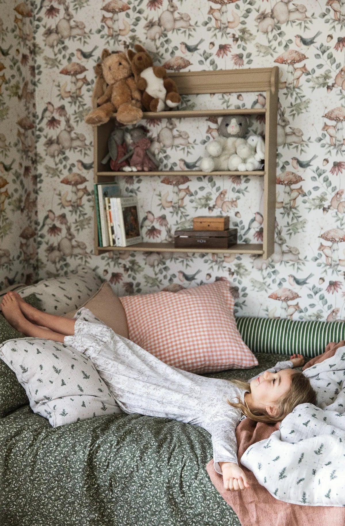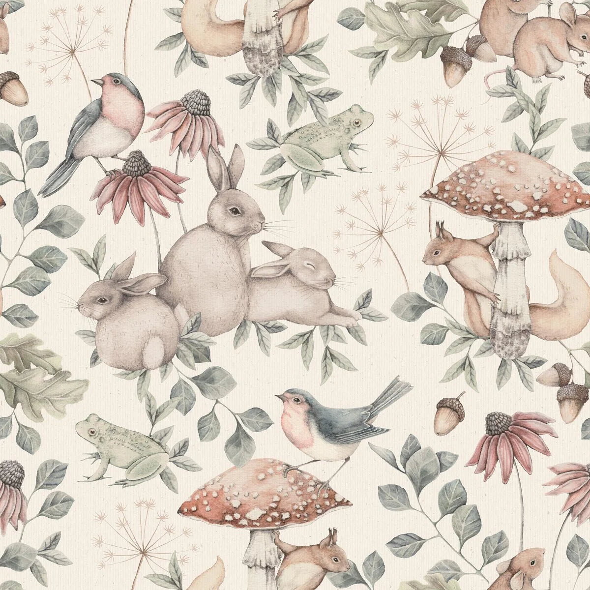 Tapeta Minou je pohádkový vzor inspirovaný lesními příběhy, který do dětského pokoje vnáší teplou a útulnou atmosféru. Kompozice zobrazuje kouzelný svět přírody plný zvířat a rostlinných detailů, zachycených v jemném akvarelovém stylu. Pečlivě vykreslené odstíny dodávají vzoru hloubku a subtilnost, čímž vytvářejí harmonický a uklidňující prostor, který podporuje klid a zábavu.
