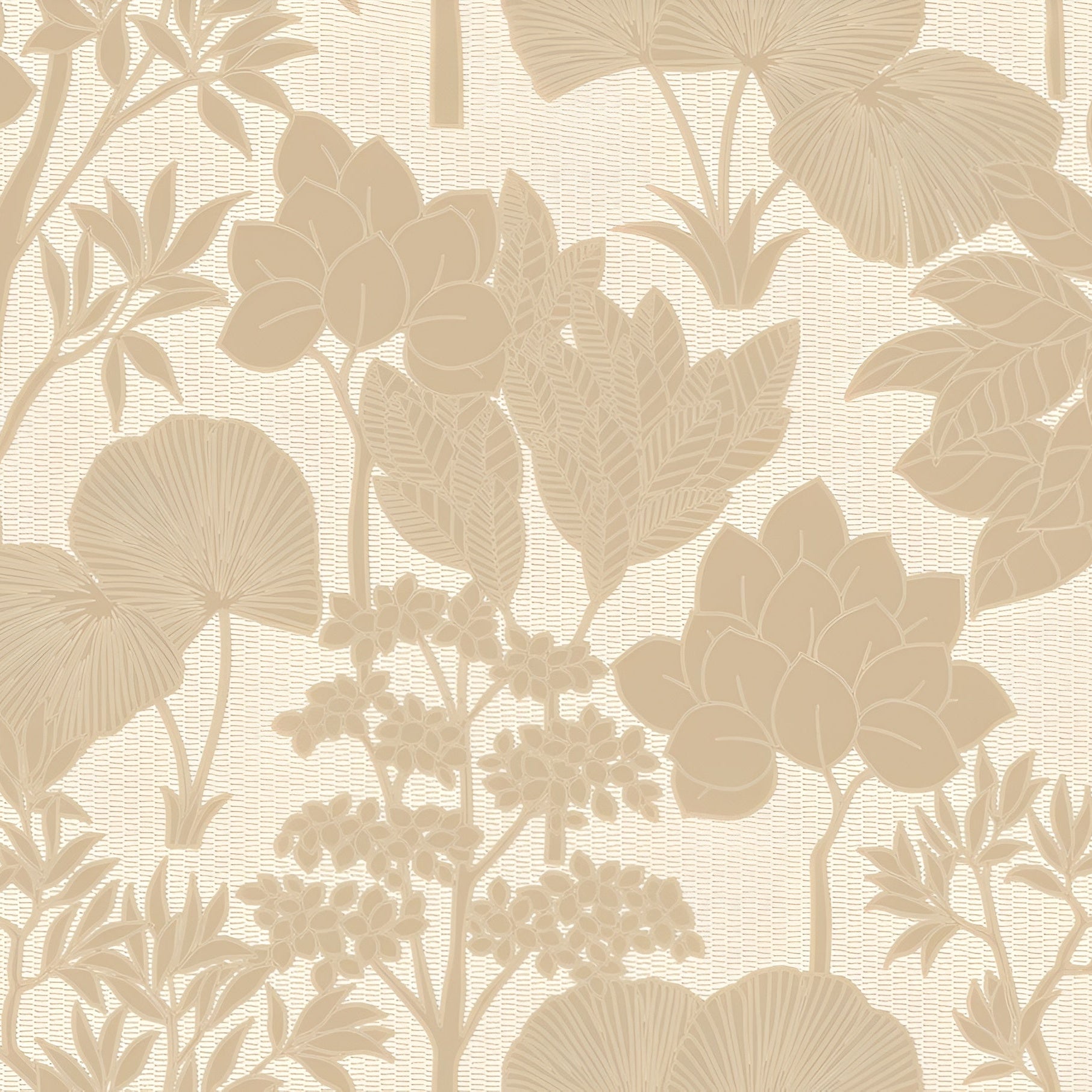 Tapeta strukturalna z roślinnym wzorem liści i kwiatów INARA - SABLE beżowy