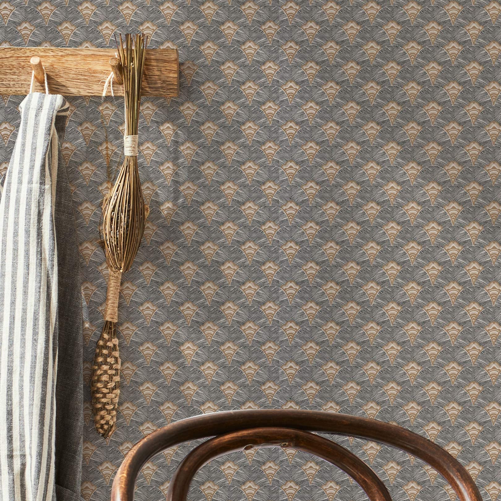 Strukturální tapeta s abstraktním vzorem vějířů ADENIUM - MORDORE šedá se zlatou