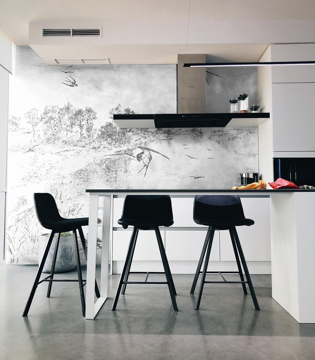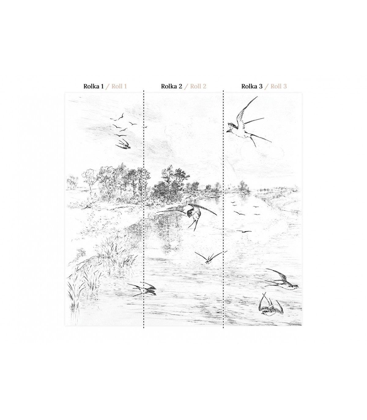Tapeta z flizelínu s krajinou SWALLOW bílá