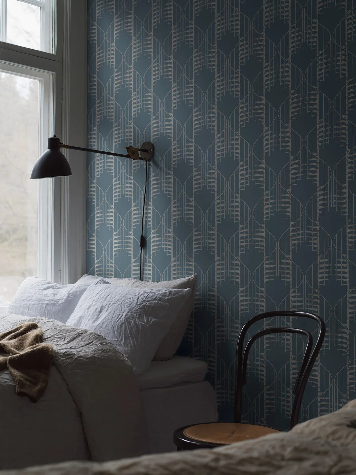 Tapeta Staircase je jedinečný návrh, který do interiéru přináší výjimečný skandinávský šarm 50. let. Vzor, inspirovaný kresbou dánského architekta Benta Karlbyho, zpočátku připomíná organické vlny, které vytvářejí tvar medaile, ale při bližším pohledu se odhaluje precizně navržená spirála schodiště. Celkově vyzařuje jemný retro styl, který spojuje eleganci s trochou zábavy.