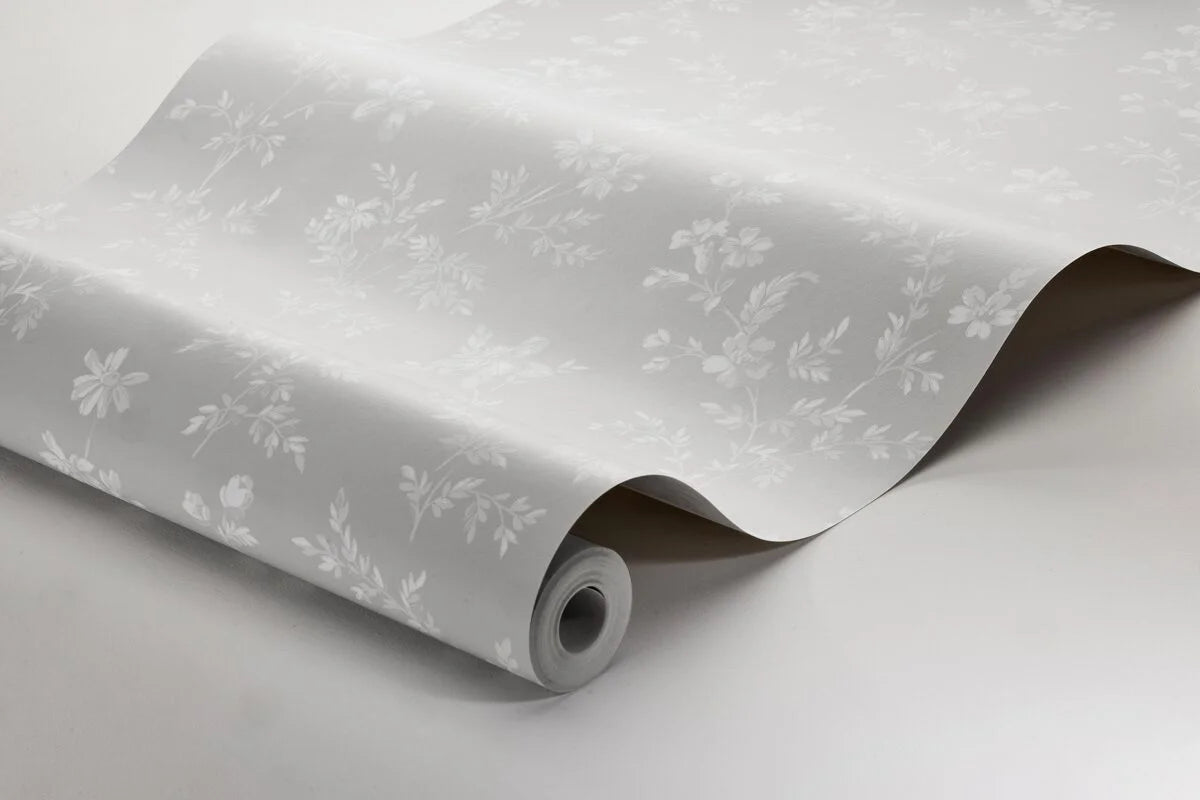 Tapeta s rostlinným motivem ÄNGSBLOMMA šedá s bílou
