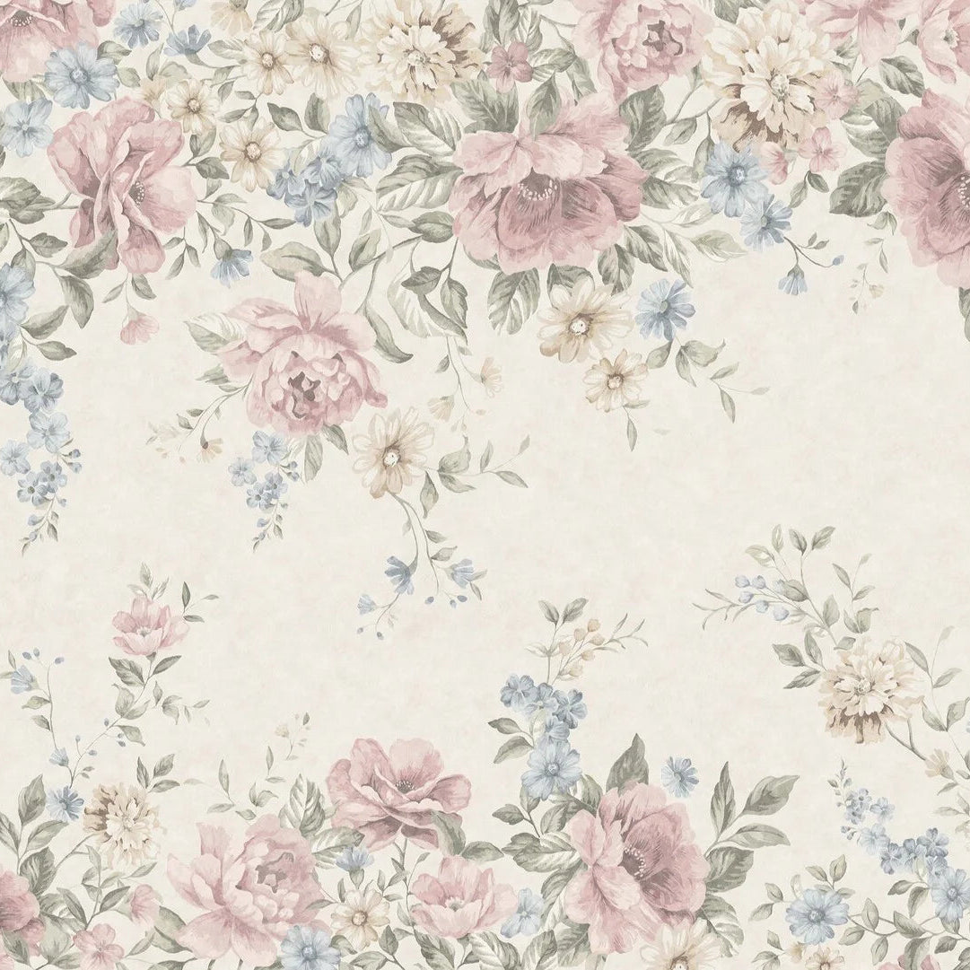 Nástěnná malba s rostlinným motivem květin FLOWER GARDEN krémová s růžovou