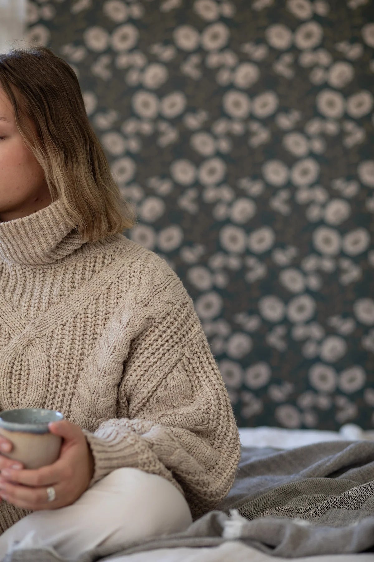 Tapeta Poppy Flow je výjimečná volba, která spojuje eleganci s dramatičností, čímž vytváří prostor plný charakteru. Motiv kvetoucích máků ve stylu Art Nouveau, sahající až do roku 1904, okouzluje svou jemnou, a přitom výraznou kompozicí. Její hluboký, téměř černý prostor s jemnými akcenty vytváří jedinečnou, bohémskou atmosféru, která se skvěle hodí do moderních interiérů.