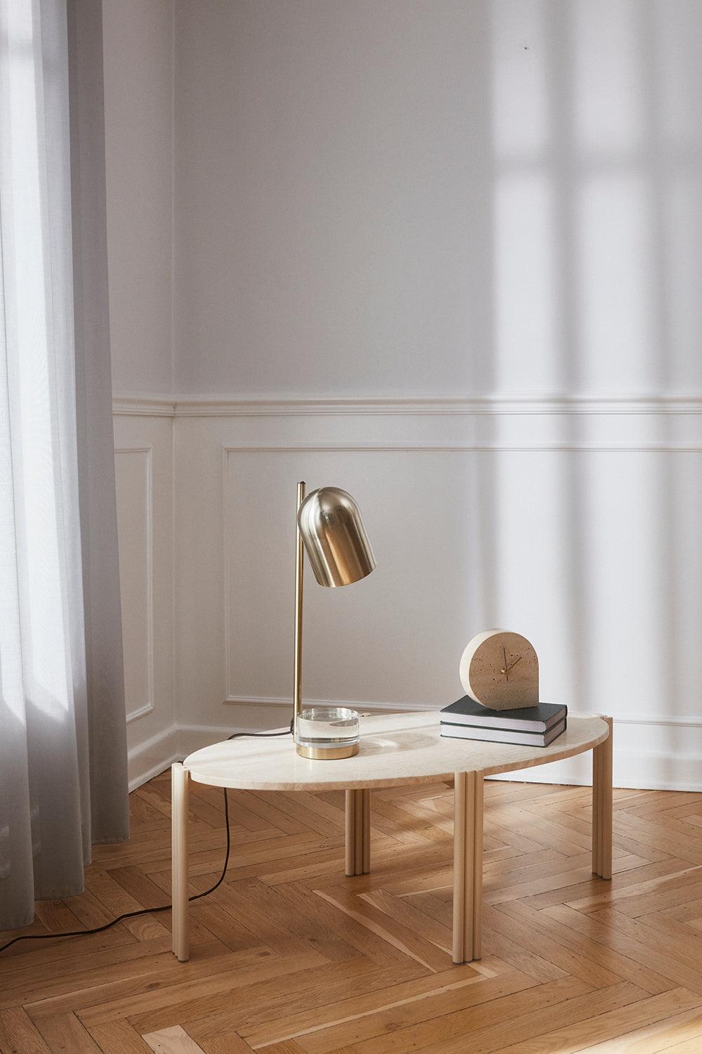 Boční stolek TRIBUS s jasnou deskou a béžovým podstavcem