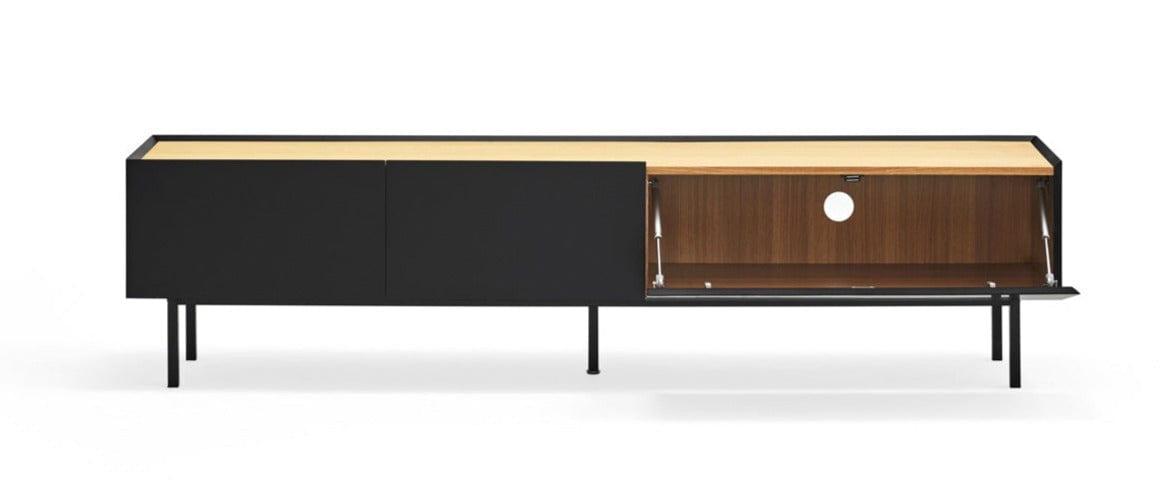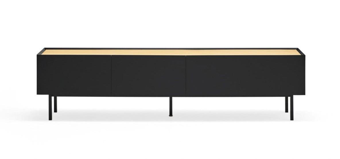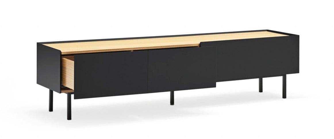 Prostorná a efektní — taková právě je TV skříňka Arista. Kombinace černých frontů a dřevěné desky se dokonale doplňuje. Elegantní konstrukce zachovává jednoduchost a minimalismus výrazu. Díky použití vysoce kvalitních materiálů skříňka pod televizor Arista je odolná a stabilní.