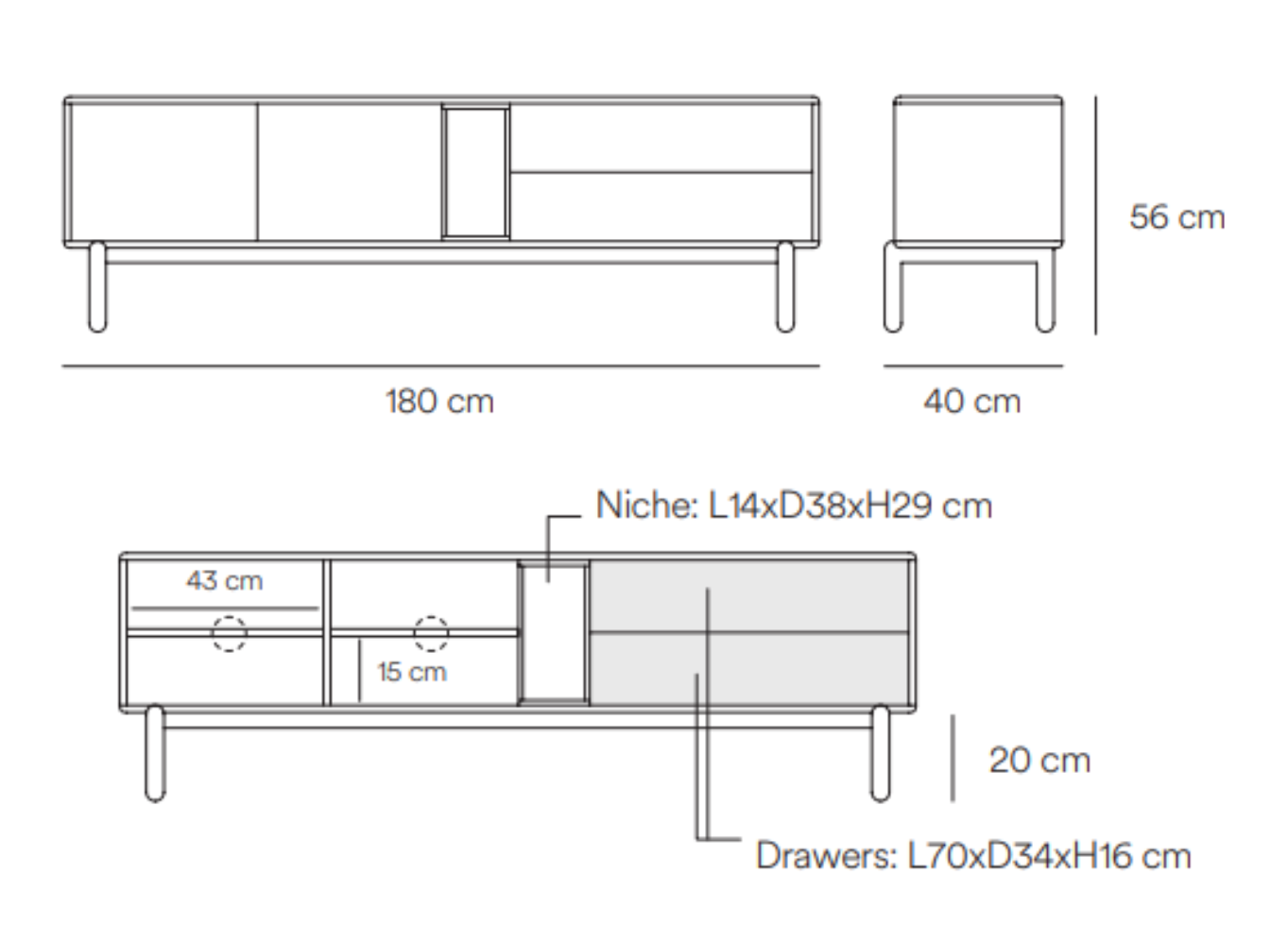 Elegantní a zároveň funkční RTV skříňka Corvo bude ideálním doplňkem do vašeho obývacího pokoje. Nadčasový tvar a použití prostorných zásuvek, stejně jako uzavíratelné skříňky, činí Corvo nejen estetickým prvkem, který dodává interiéru lesk, ale také praktickým nábytkem pro každodenní použití.