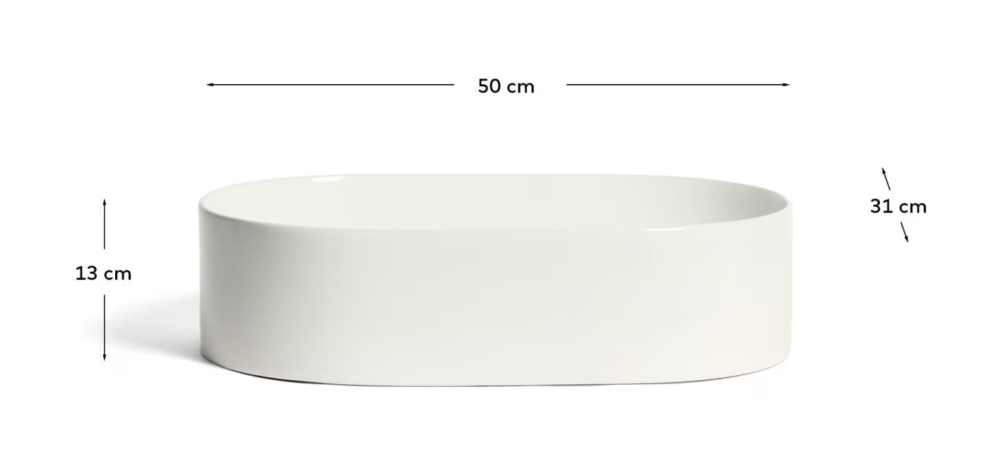 Dzięki uniwersalnemu designowi ceramiczna umywalka Ovara z łatwością dopasuje się do różnych stylów wnętrz – od klasycznych po nowoczesne. Jest kompatybilna z meblami łazienkowymi z kolekcji Kave Home, co pozwala na stworzenie harmonijnego zestawu i łatwy montaż. To idealne rozwiązanie dla osób poszukujących trwałego, estetycznego i komfortowego elementu wyposażenia łazienki.