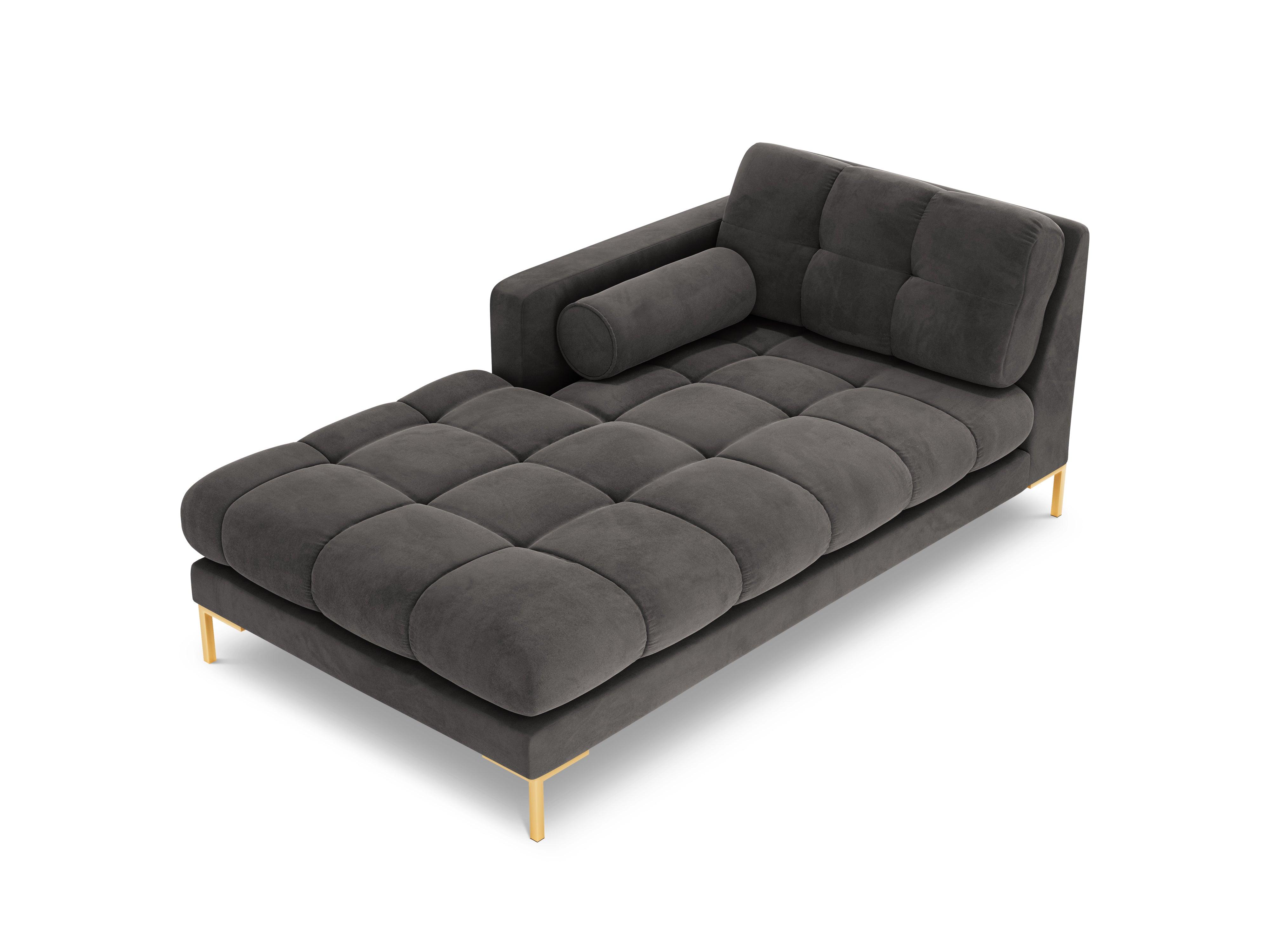 Szezlong aksamitný levostranný BALI tmavě šedý se zlatou základnou