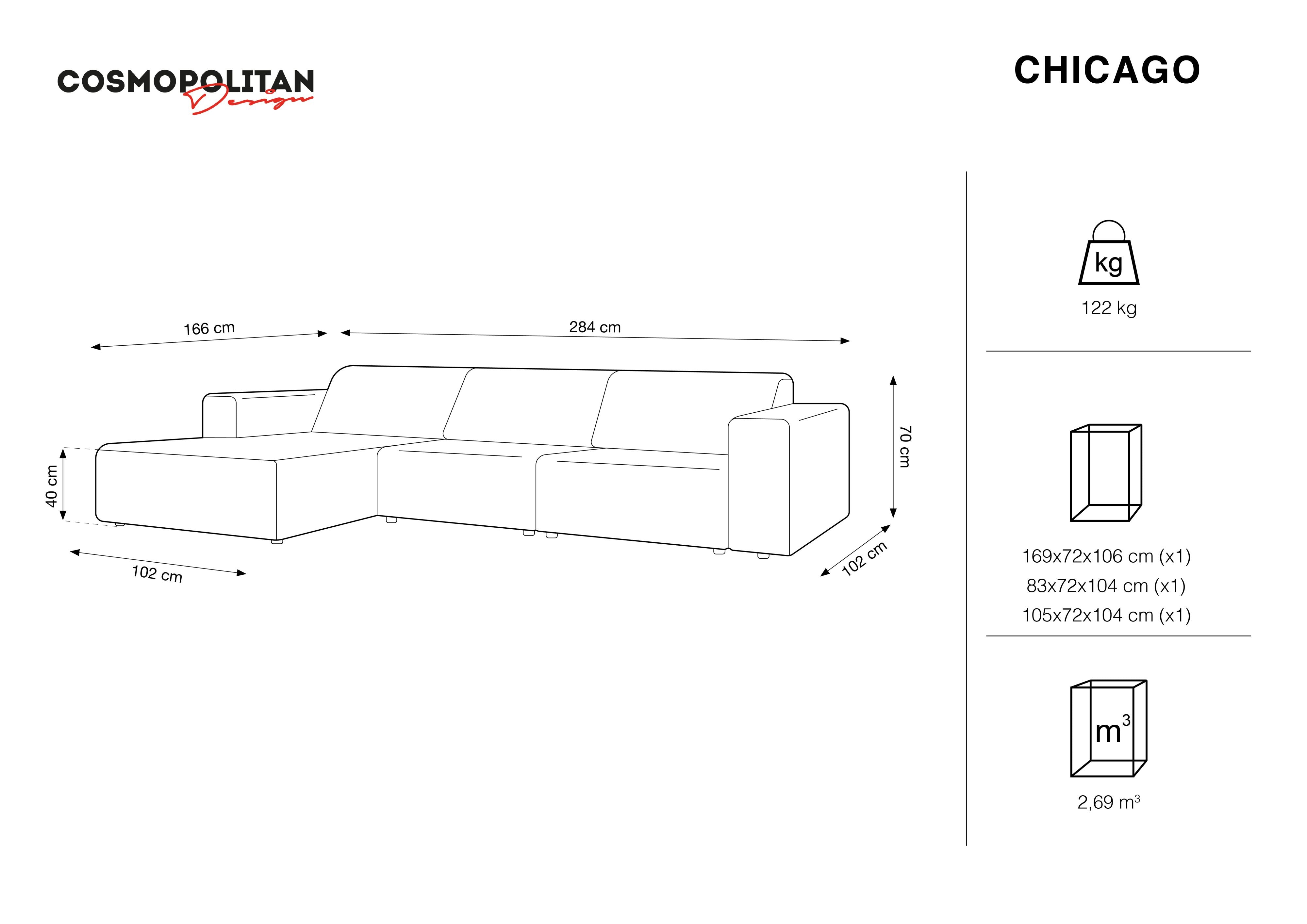 Rohová sedačka pro čtyři osoby Chicago se vyznačuje jedinečným designem, kde jemně prošívaná sedadla a četné prošívání na opěradlech dodávají celku rafinovaný vzhled. Nízká, rozlehlá konstrukce vyzařuje neobyčejnou eleganci, dokonale podtrhující styl obývacího pokoje. Elastická, hluboká sedadla s bohatým polstrováním zaručují nejen komfort, ale také plný relax po náročném dni.