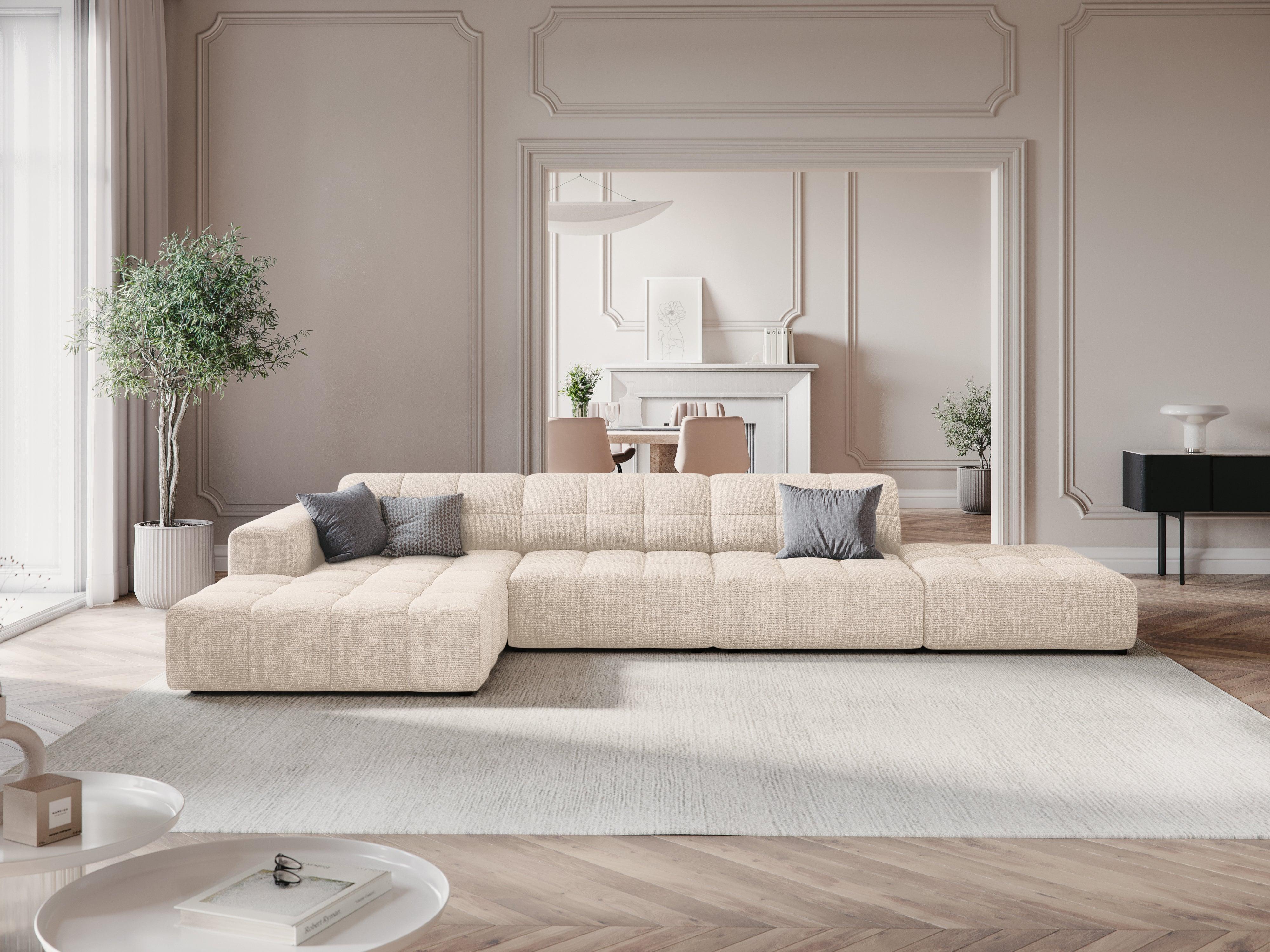 Rohová sedací souprava 5-místná CHICAGO světle béžová s chenillem