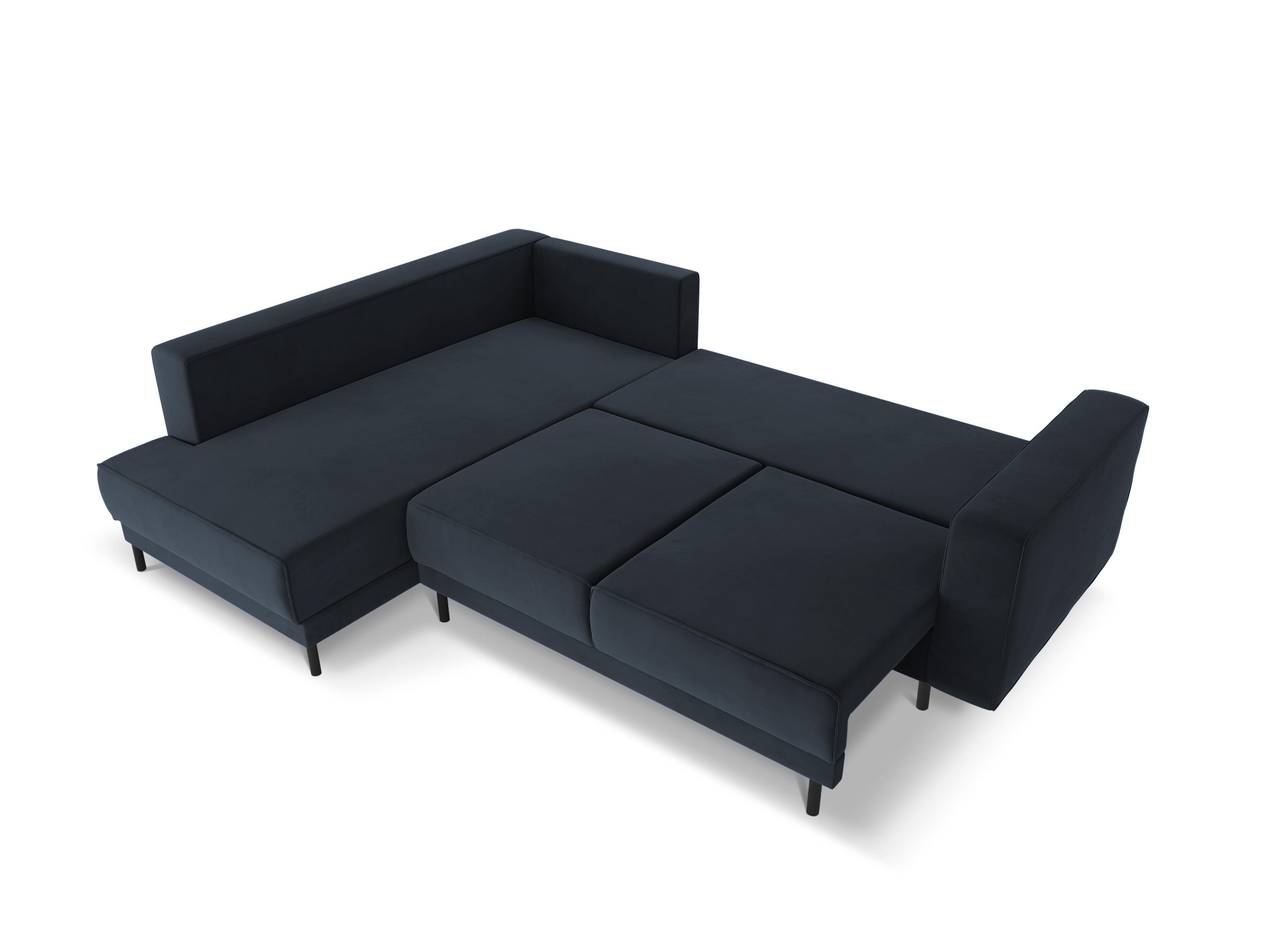 Sametový rohový gauč levostranný s funkcí spaní CARO tmavě modrý