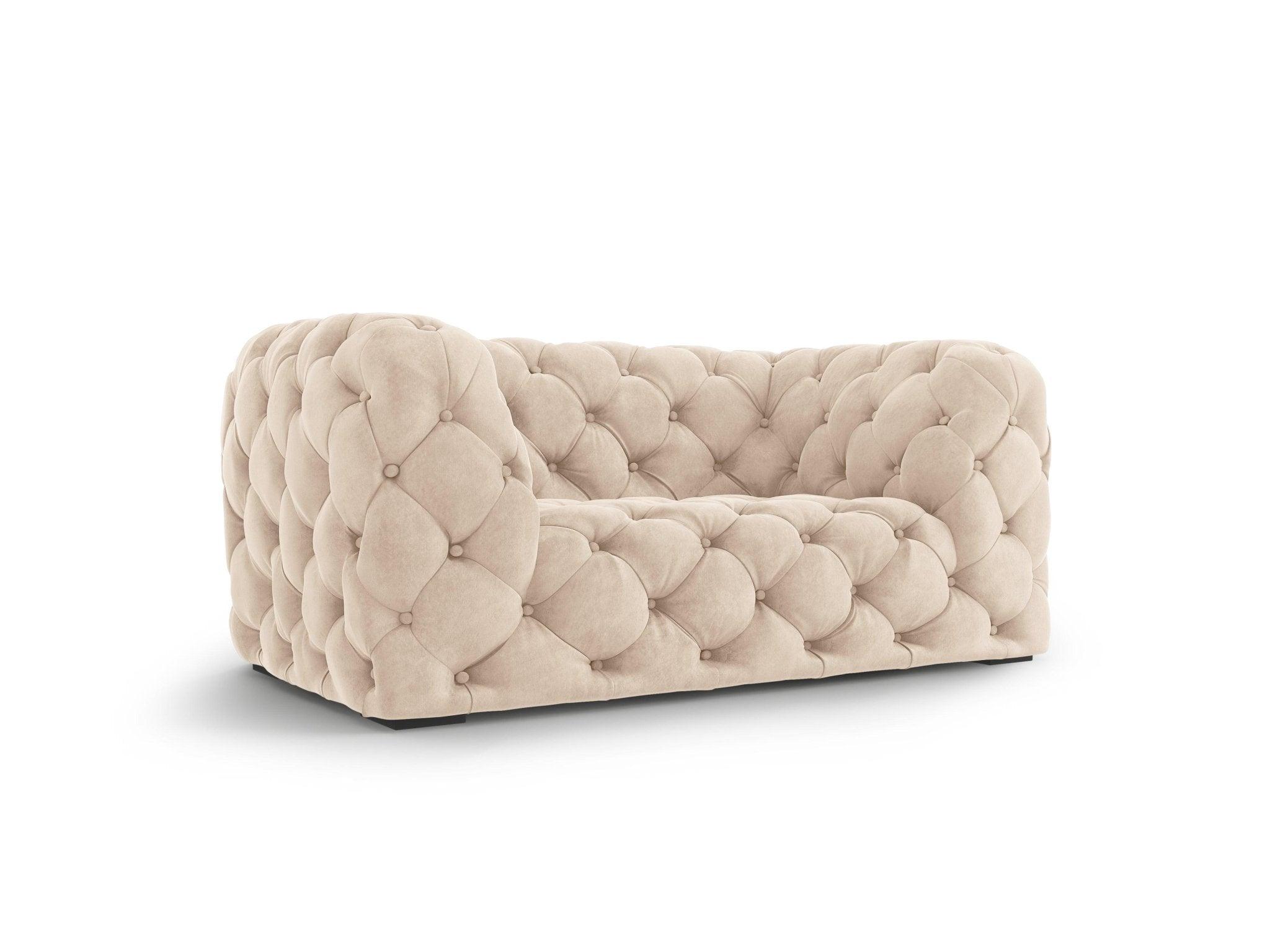 Sametový křeslo Loge je neobyčejnou kombinací klasické formy s nádechem luxusu. Neotřelý design vynikne v každém obývacím pokoji a vnese do prostoru kousek elegance. Hluboké prošívání a dodatečné švy ve tvaru čtverců jsou zvýrazněny dekorativními knoflíky.