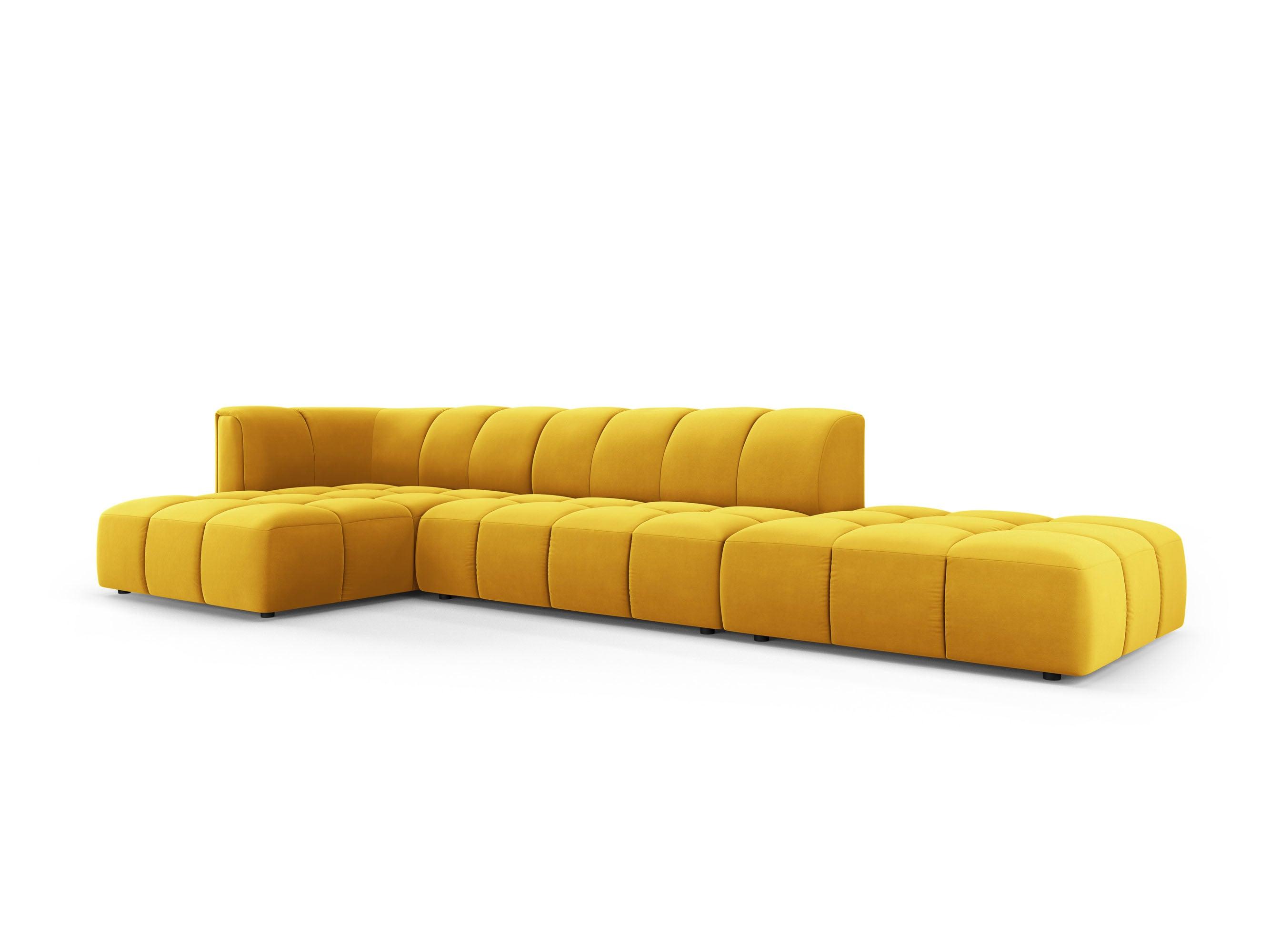 Sametový rohový gauč pro 5 osob, levostranný, otevřený FRANCESCA, žlutý