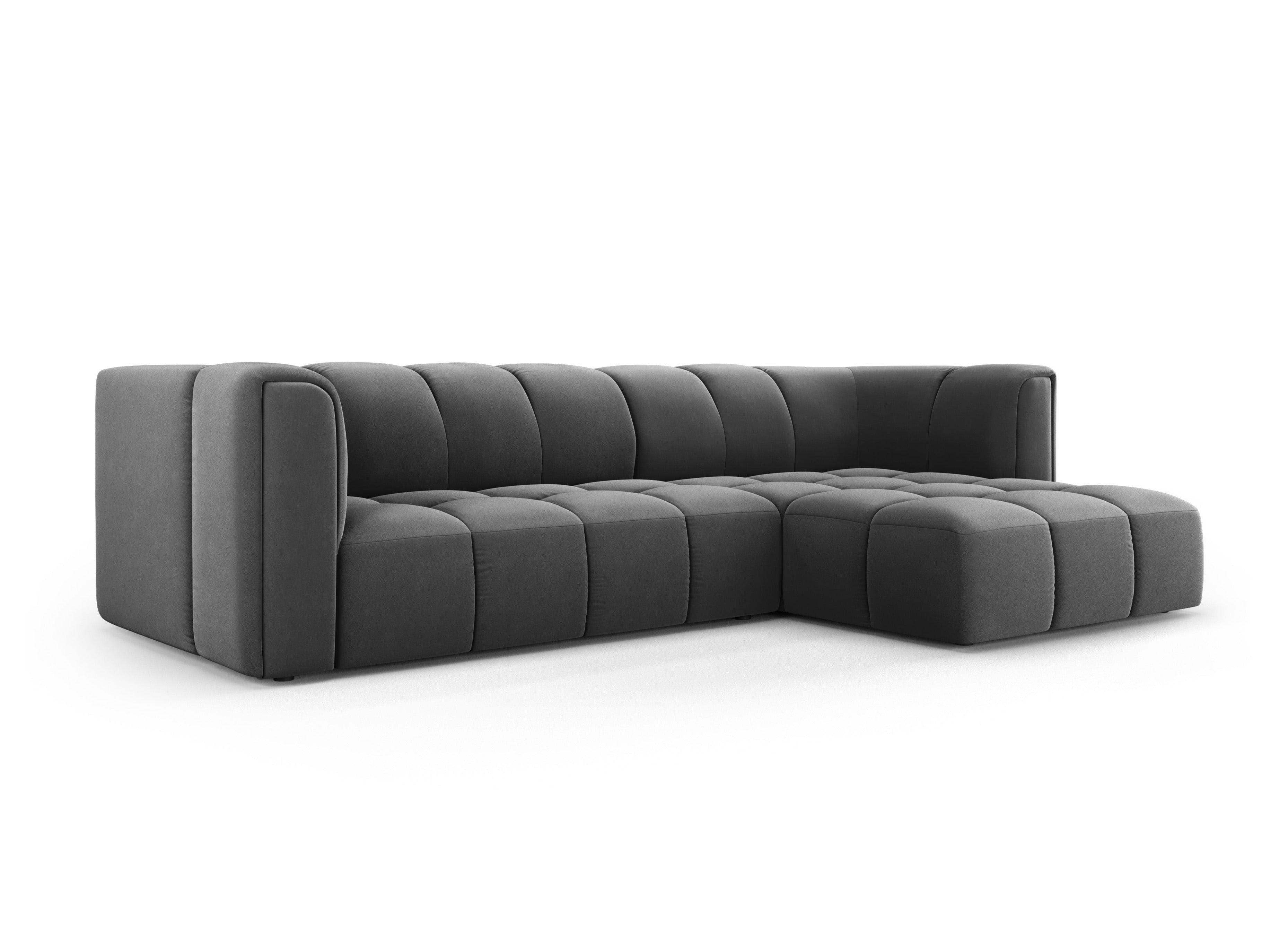 Rohová sedačka sametová 3-místná pravostranná FRANCESCA šedá