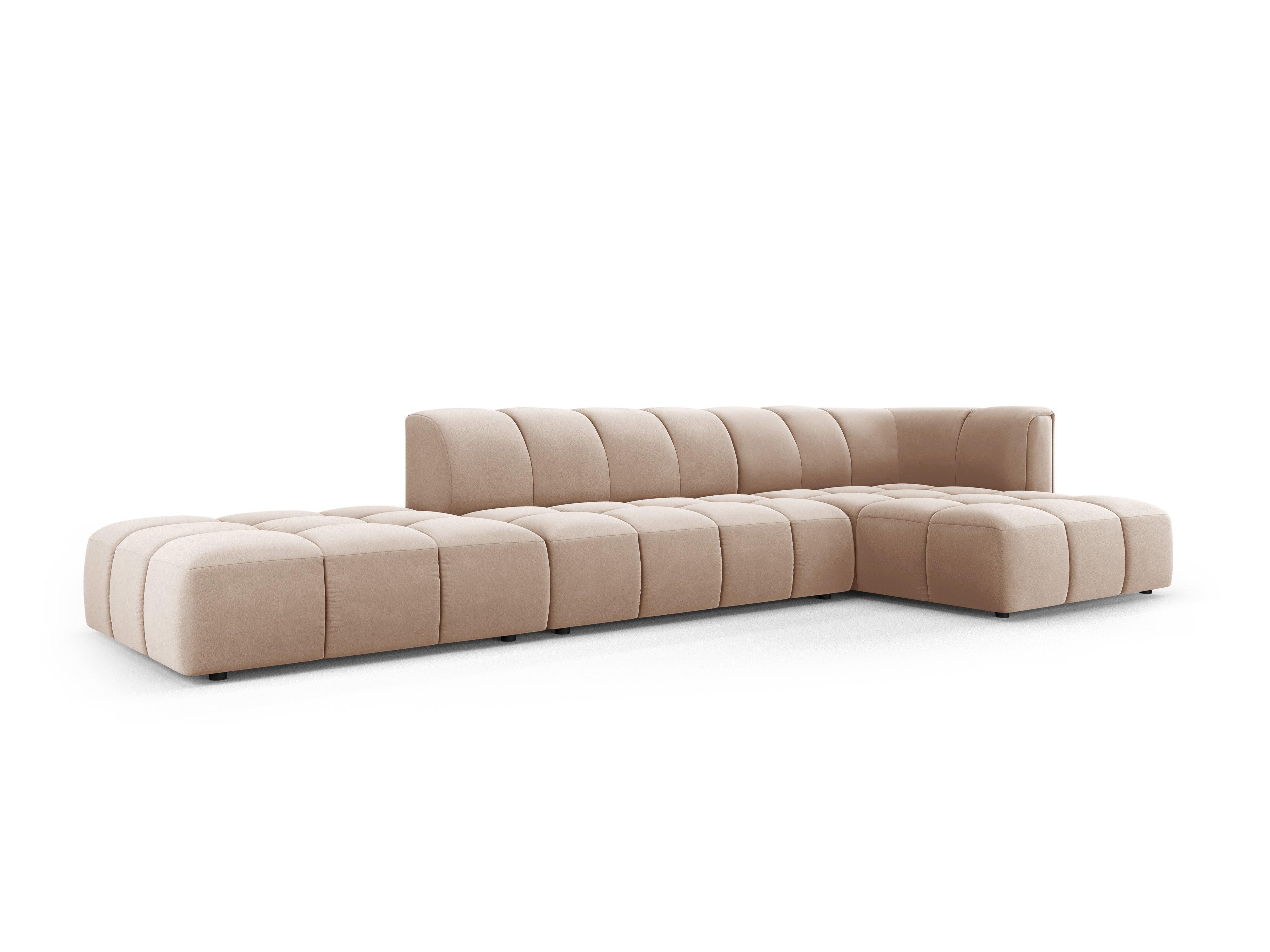 Sametový rohový gauč pro 5 osob pravostranný otevřený FRANCESCA béžový