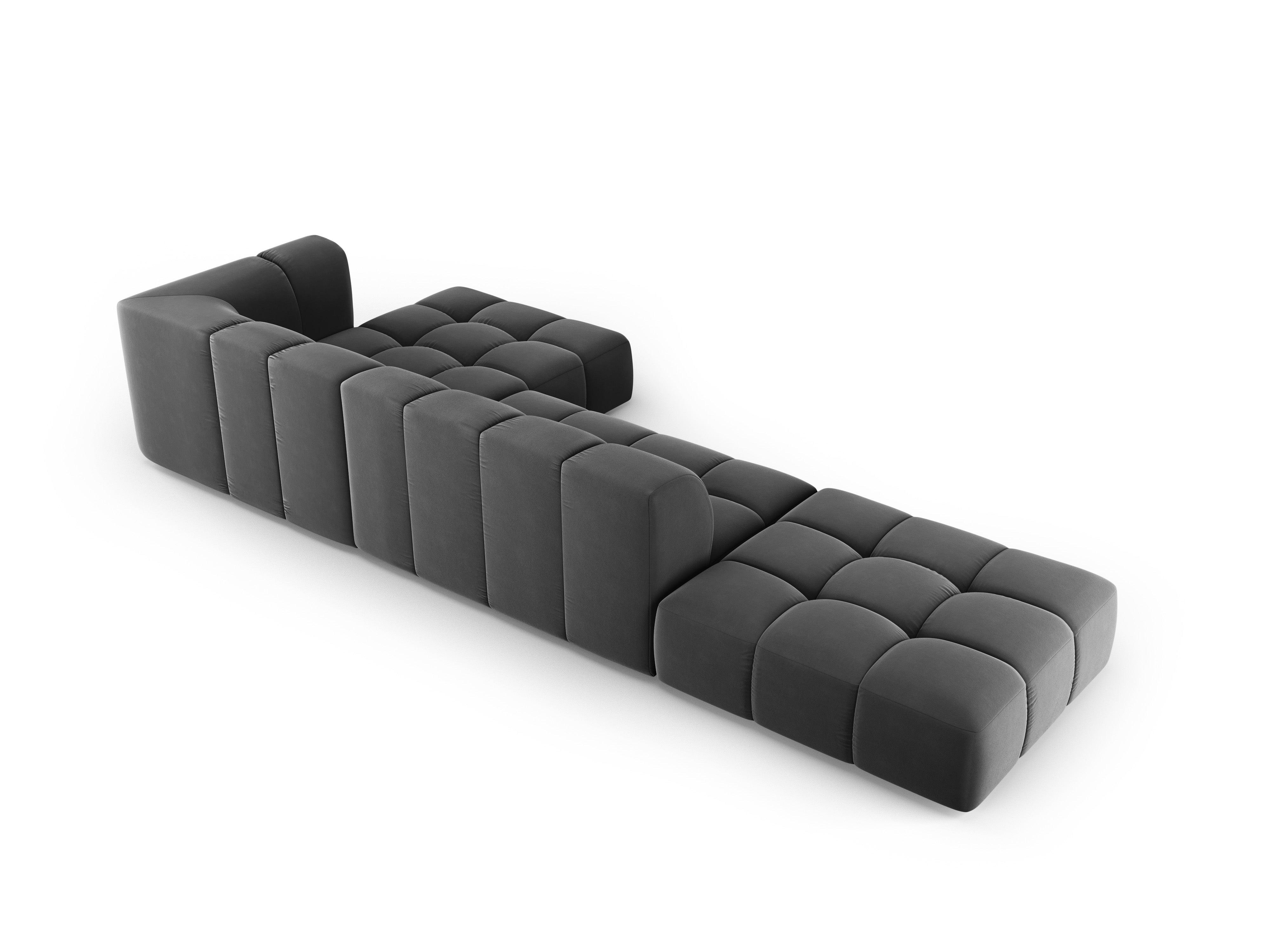 Sametový rohový gauč pro 5 osob, pravostranný, otevřený FRANCESCA, šedý