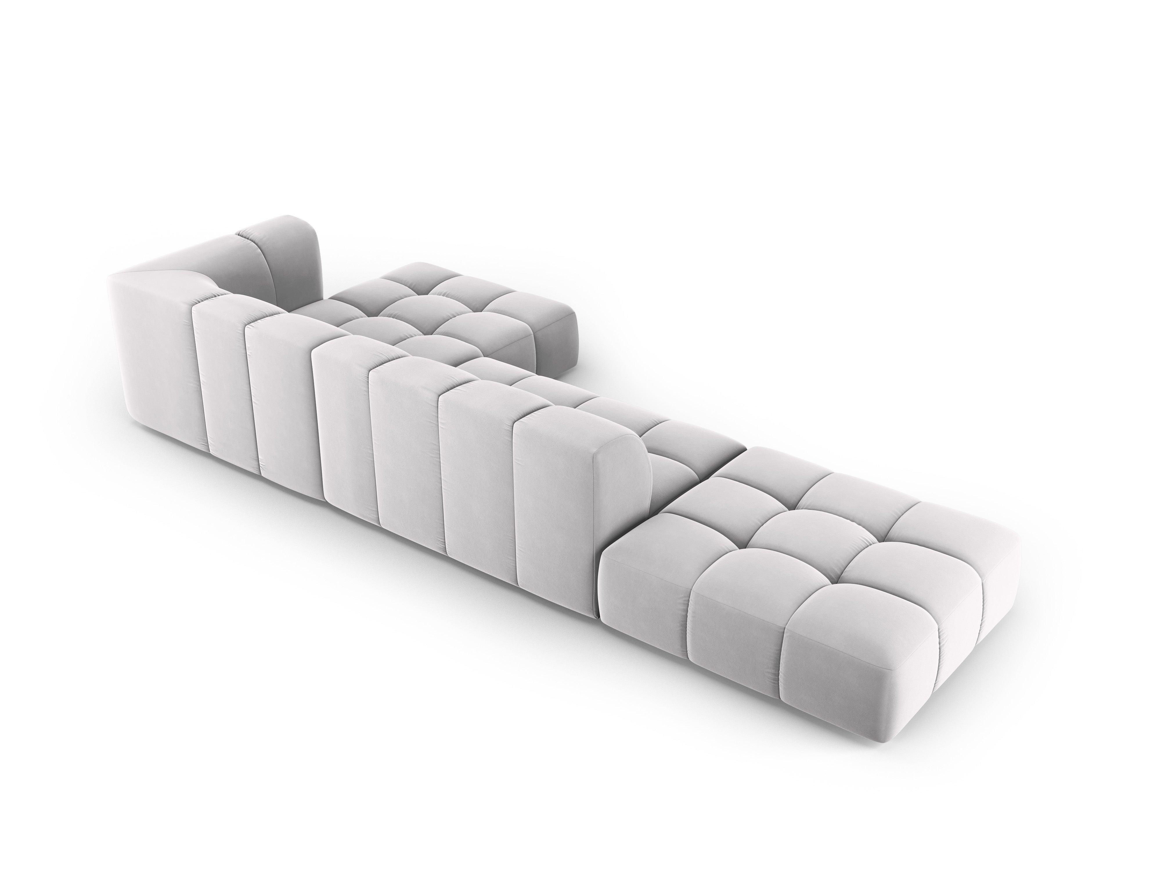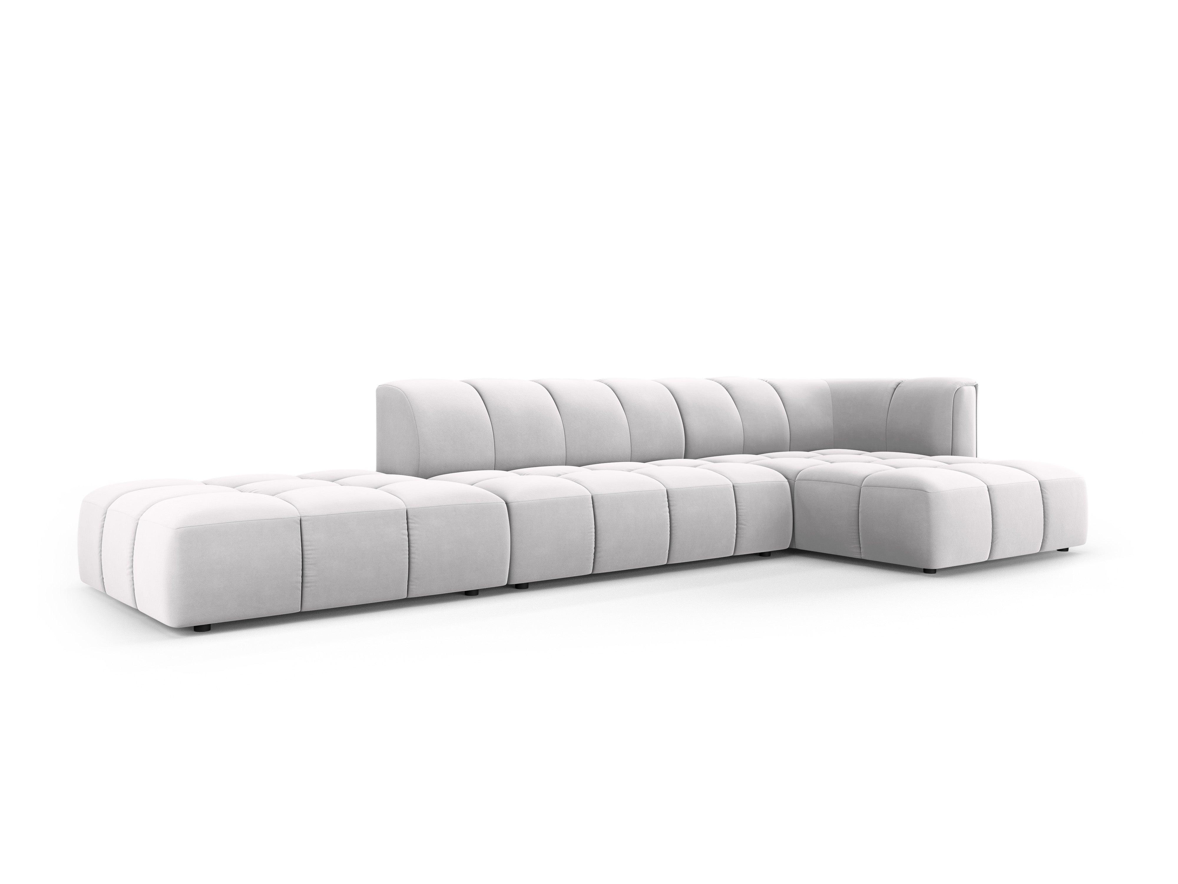 Sametový rohový gauč pro 5 osob pravostranný otevřený FRANCESCA stříbrný