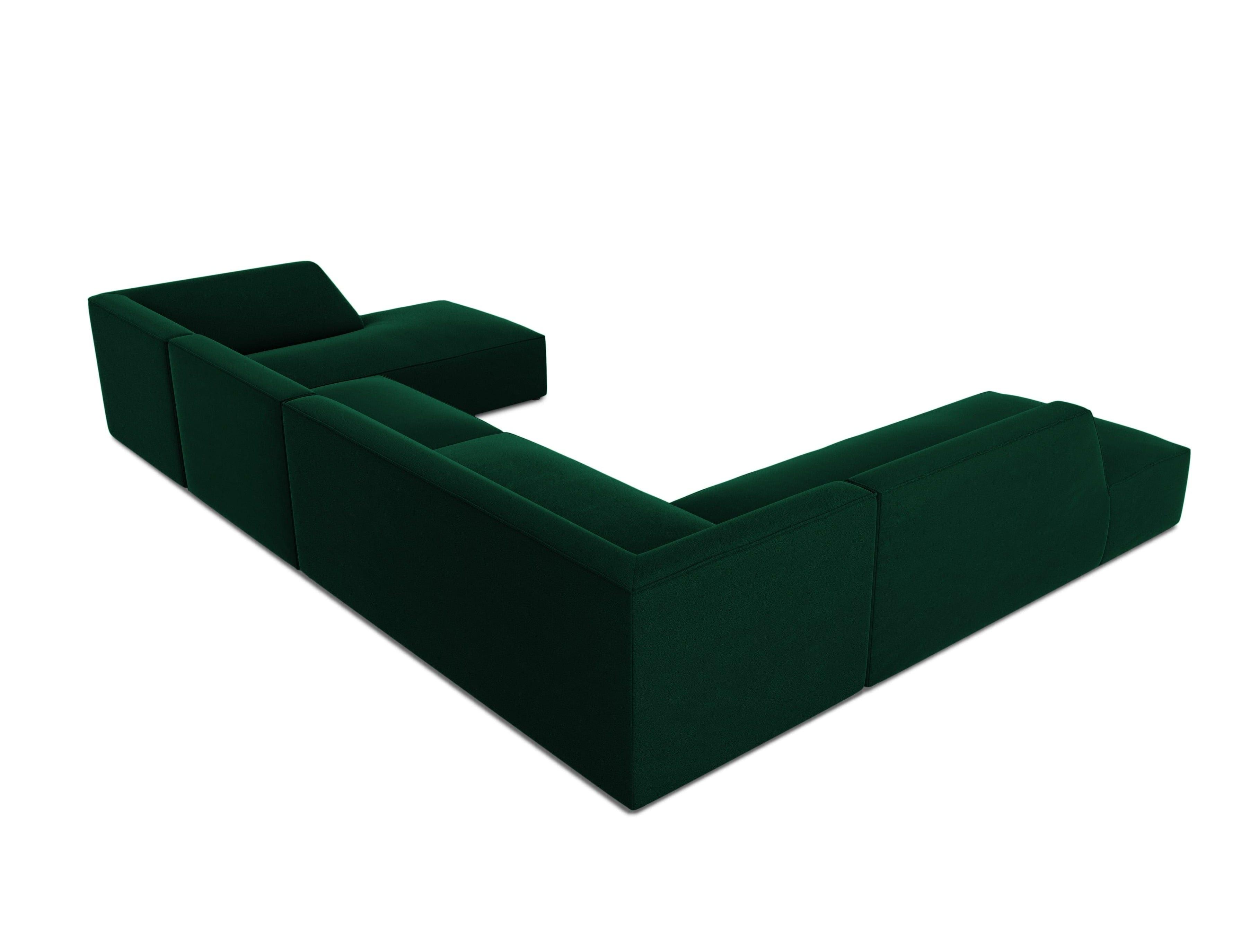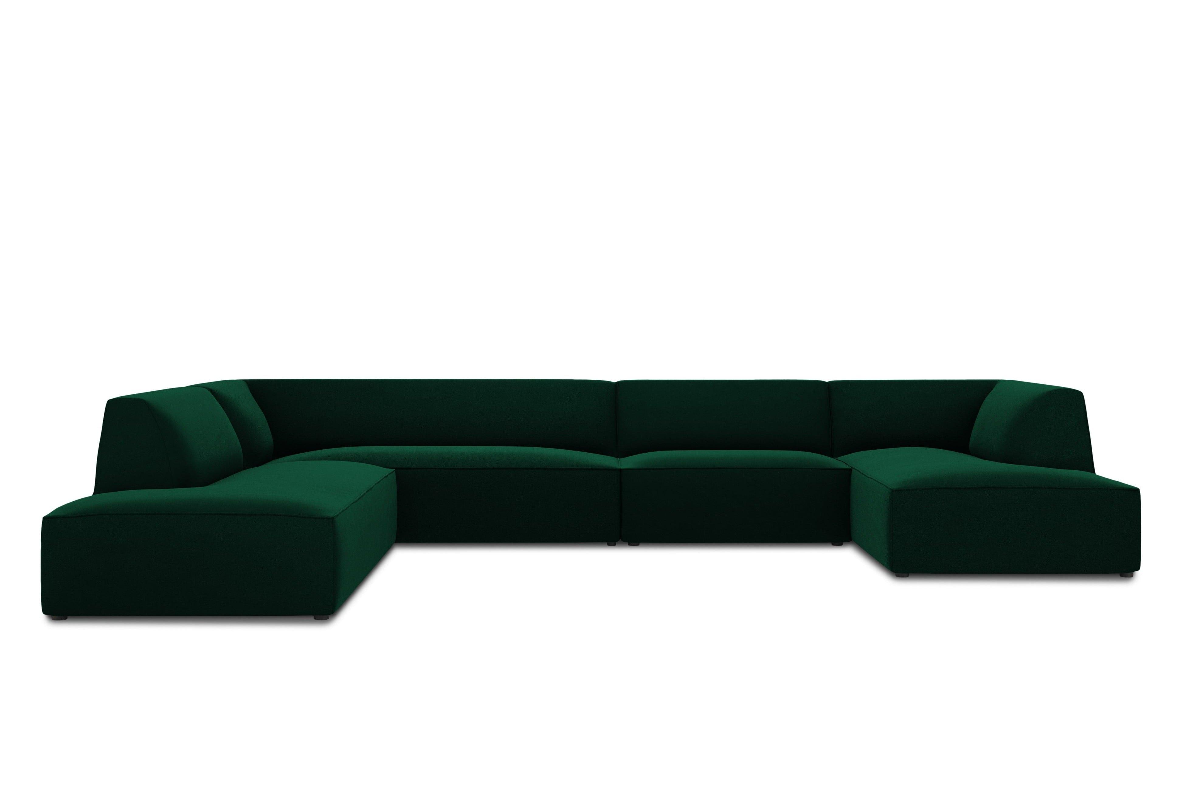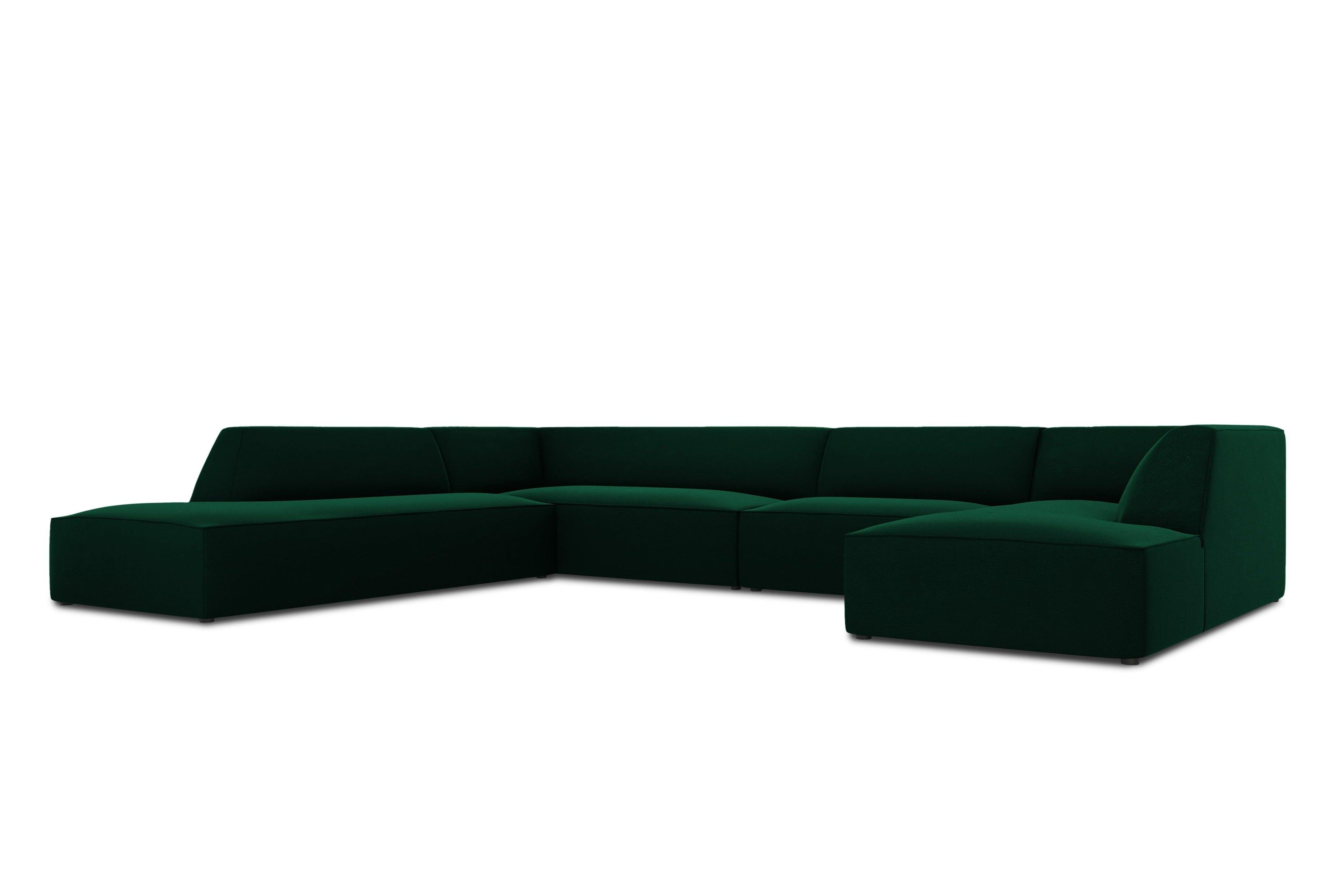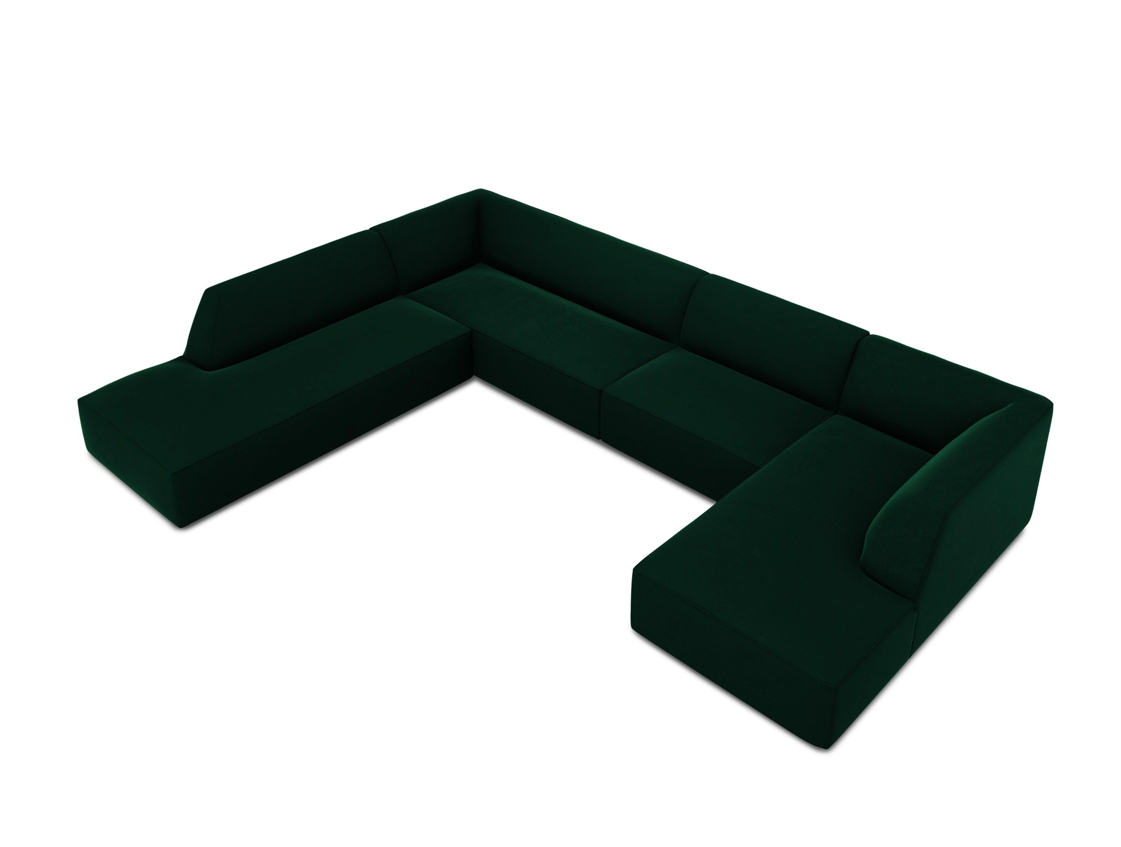 Rohová sedačka ve tvaru U sametová levostranná RUBY lahvově zelená
