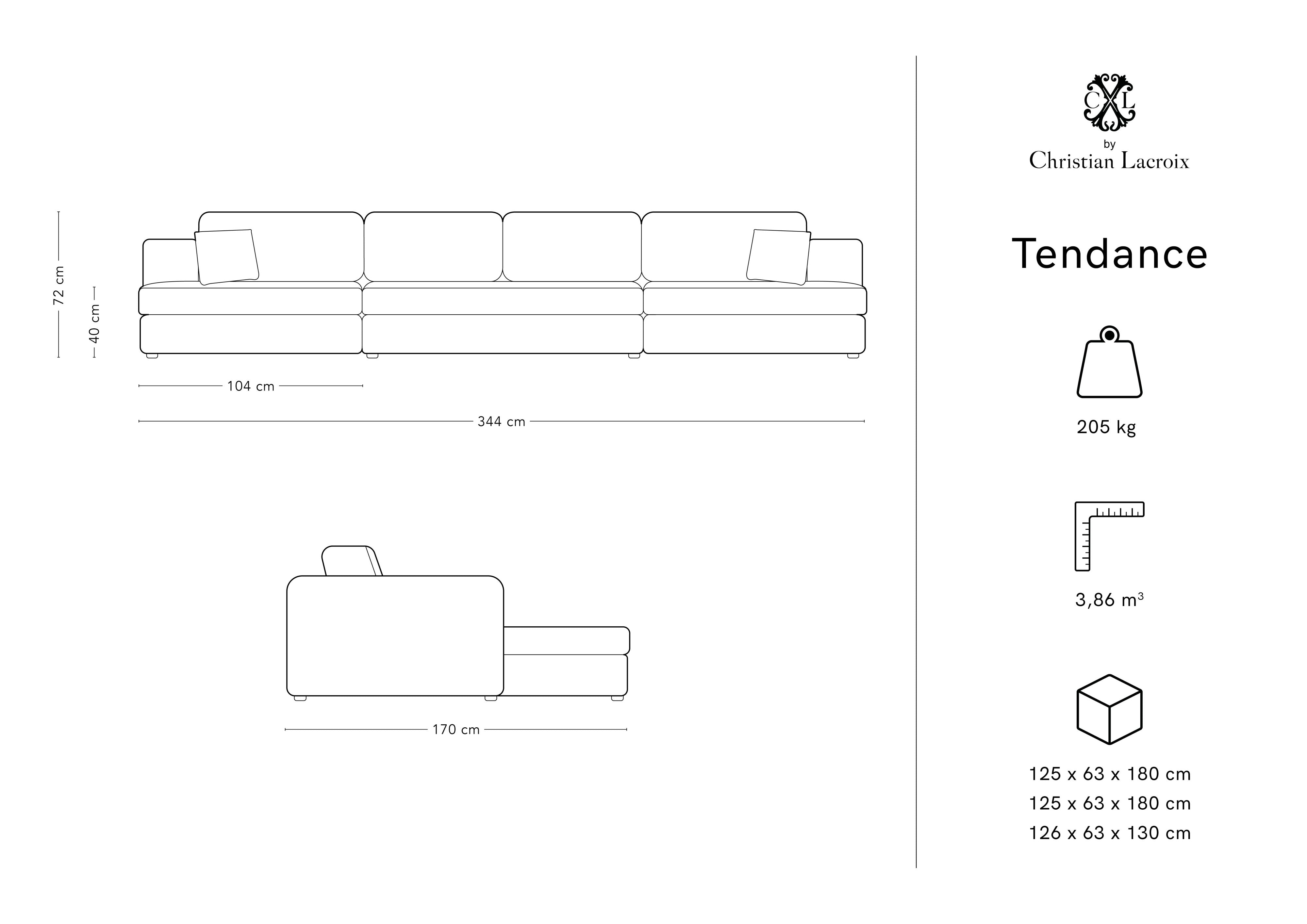 Panoramatický roh Tendance, podepsaný francouzským módním domem Christian Lacroix, je krásnou kombinací nadčasové elegance a moderního designu. Geometrické a jemné tvary tohoto rohu přinesou do vašeho interiéru kousek útulnosti. Jeho kubistický design dodává celku jedinečný charakter.