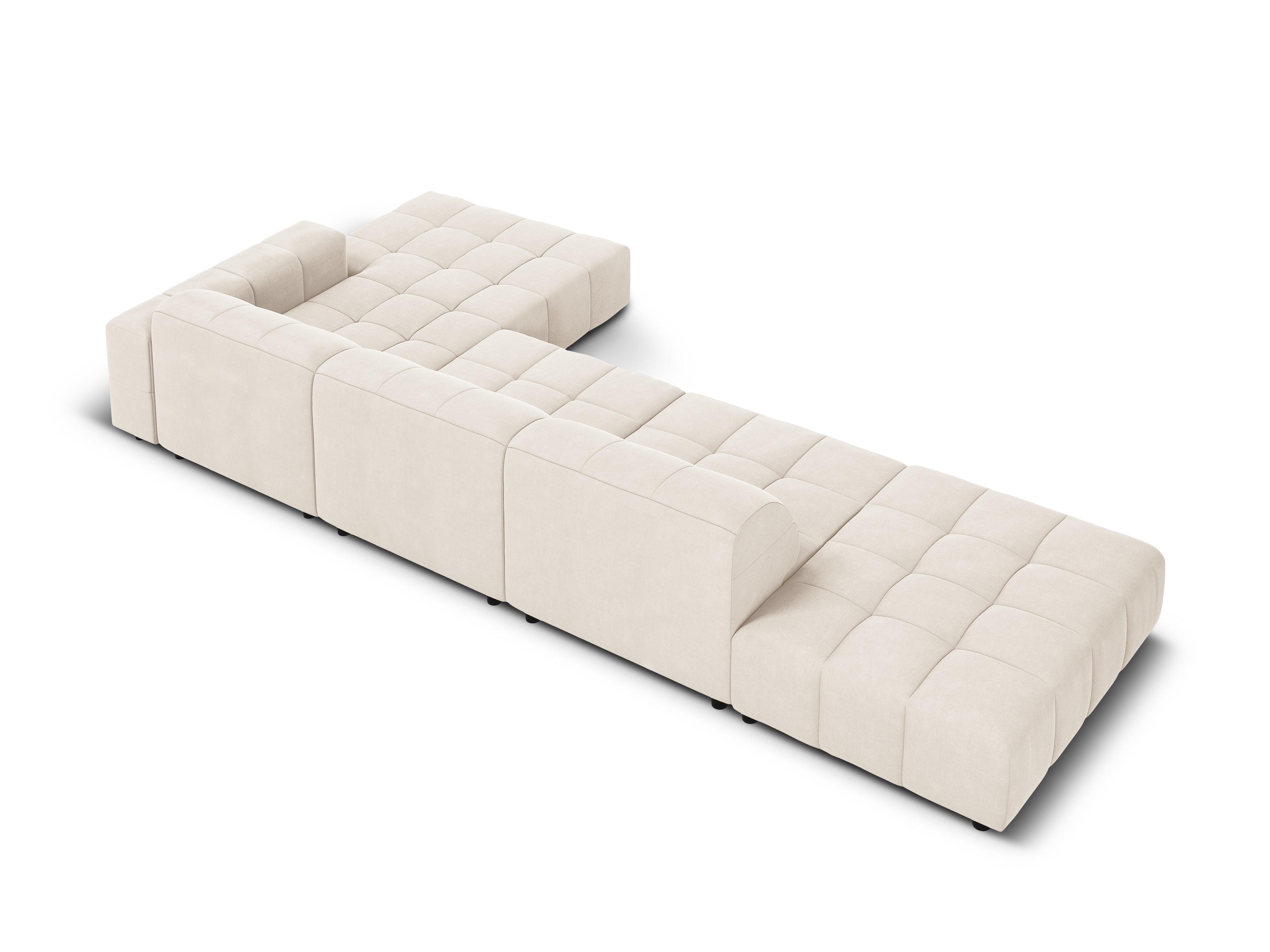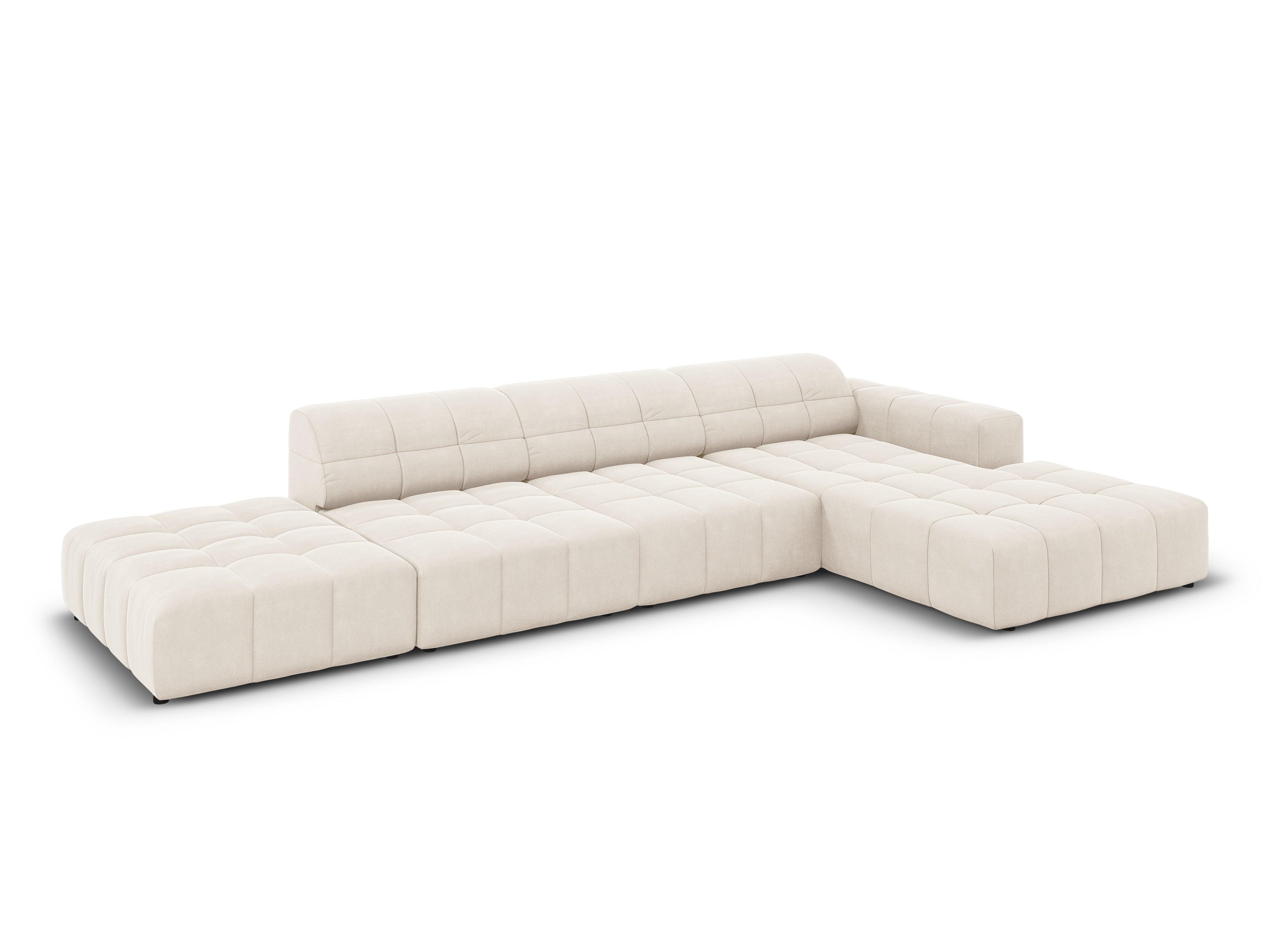Pravostranný sametový rohový gauč pro 5 osob CHICAGO světle béžový