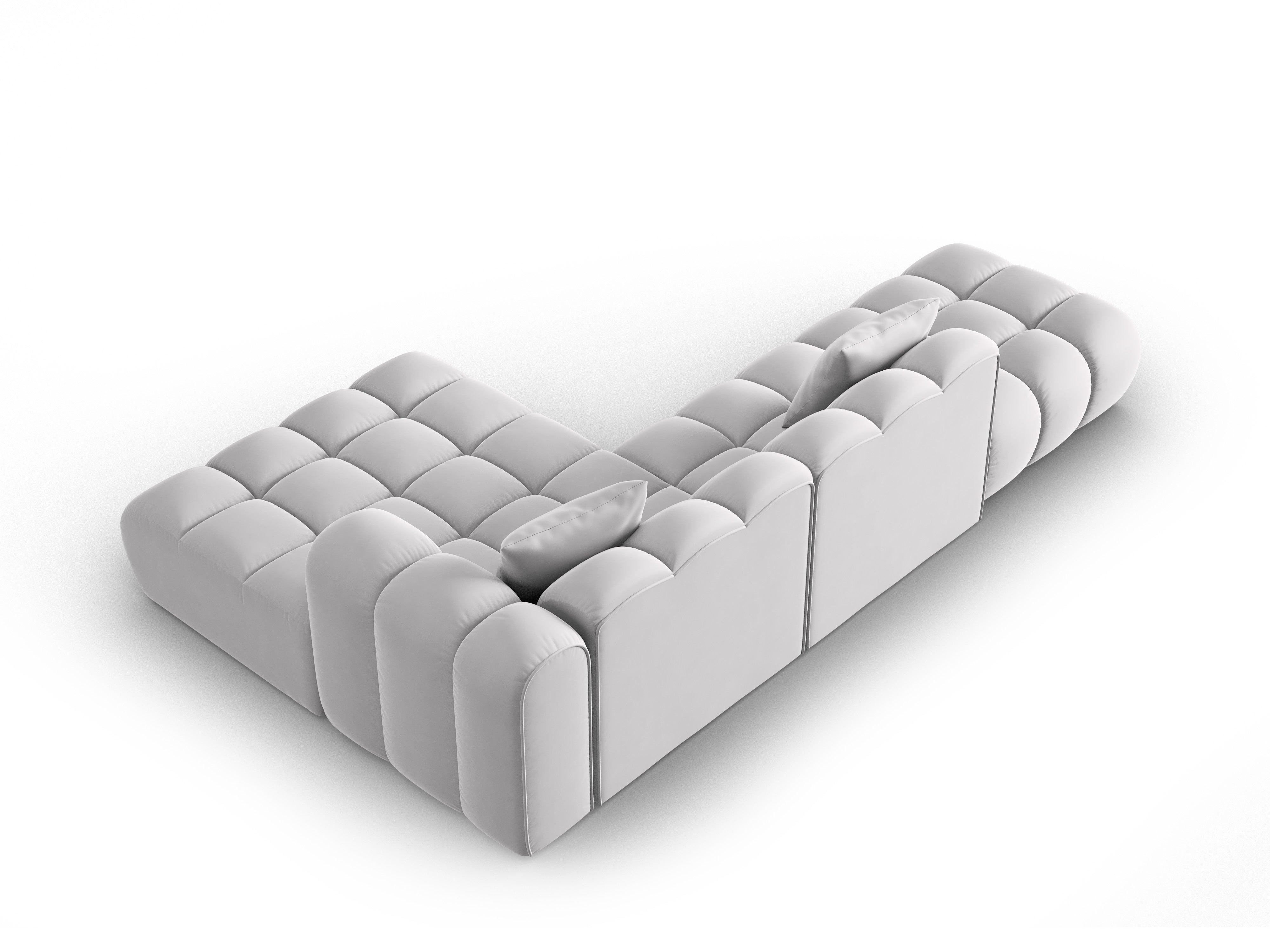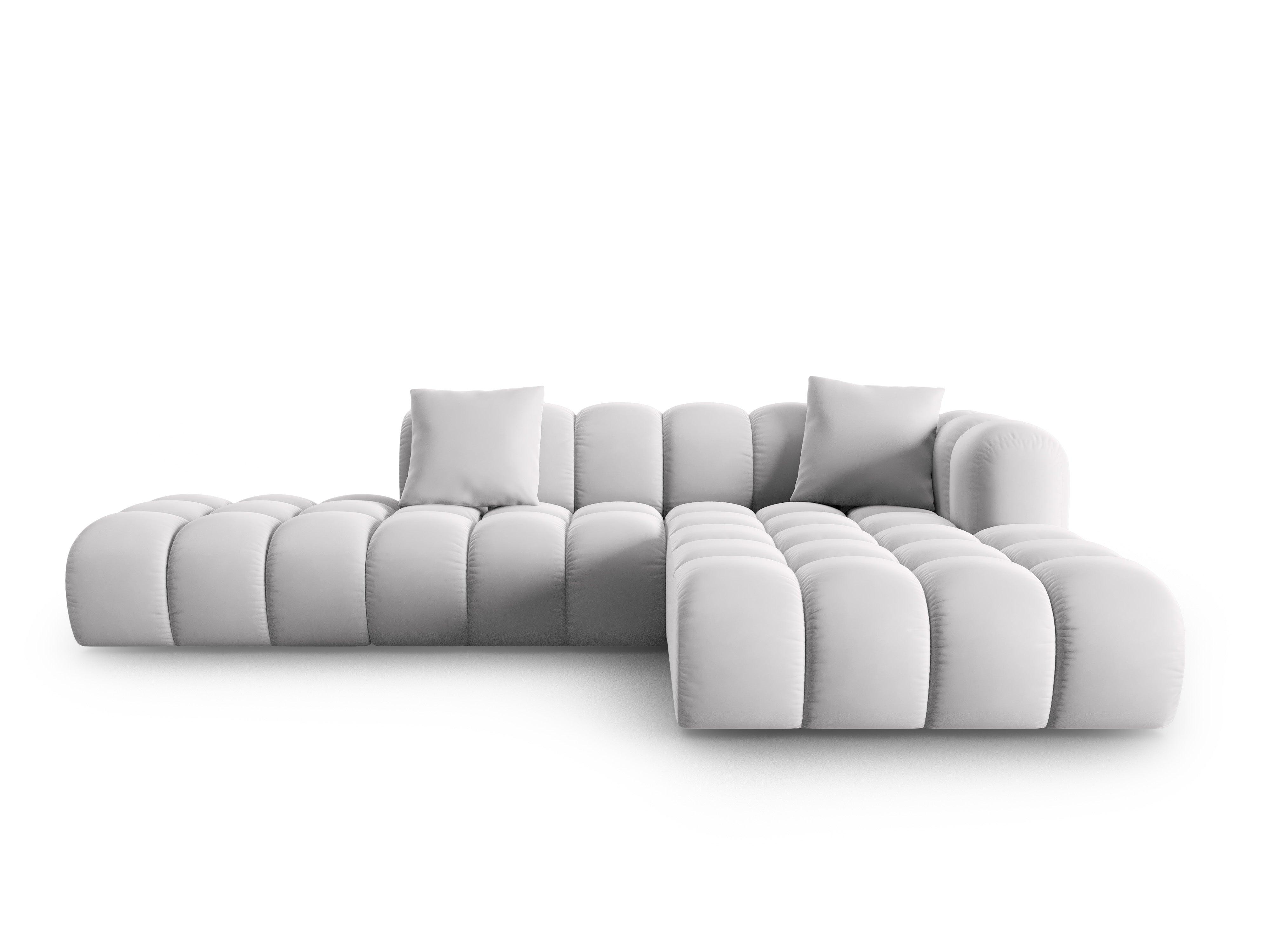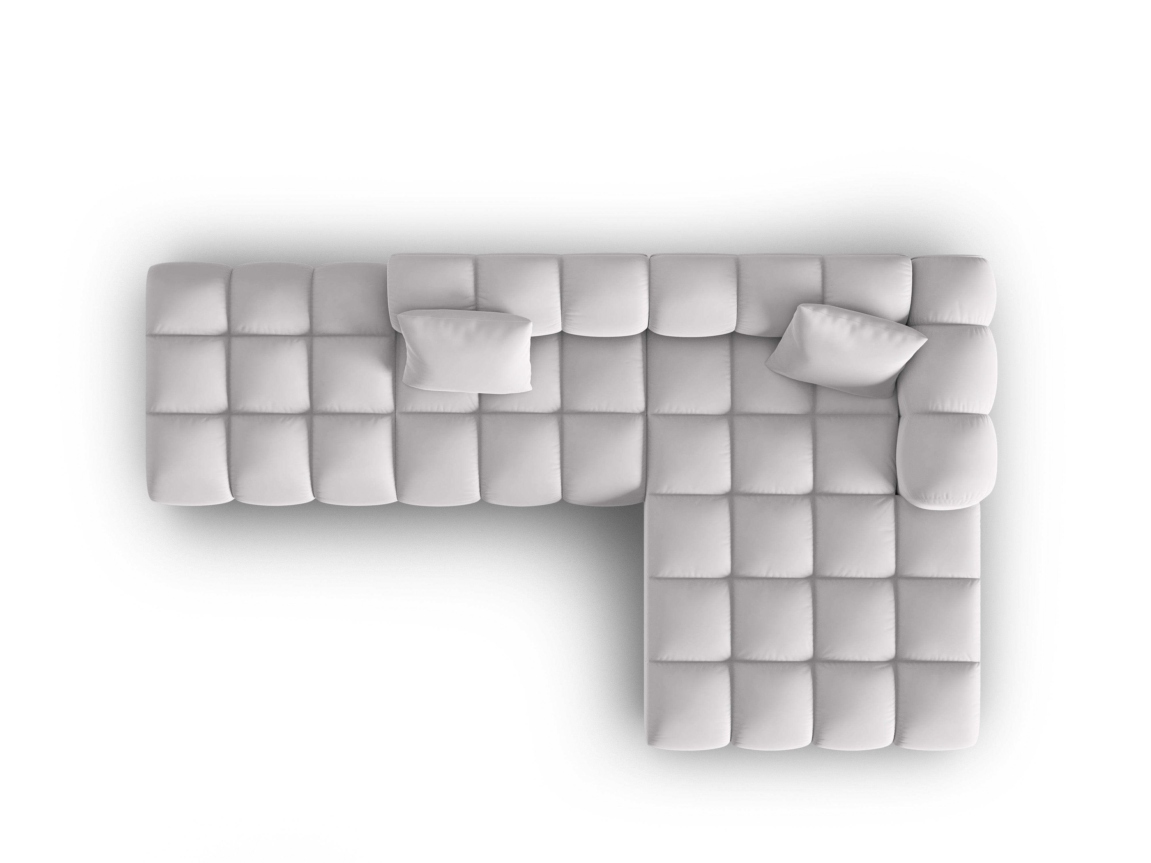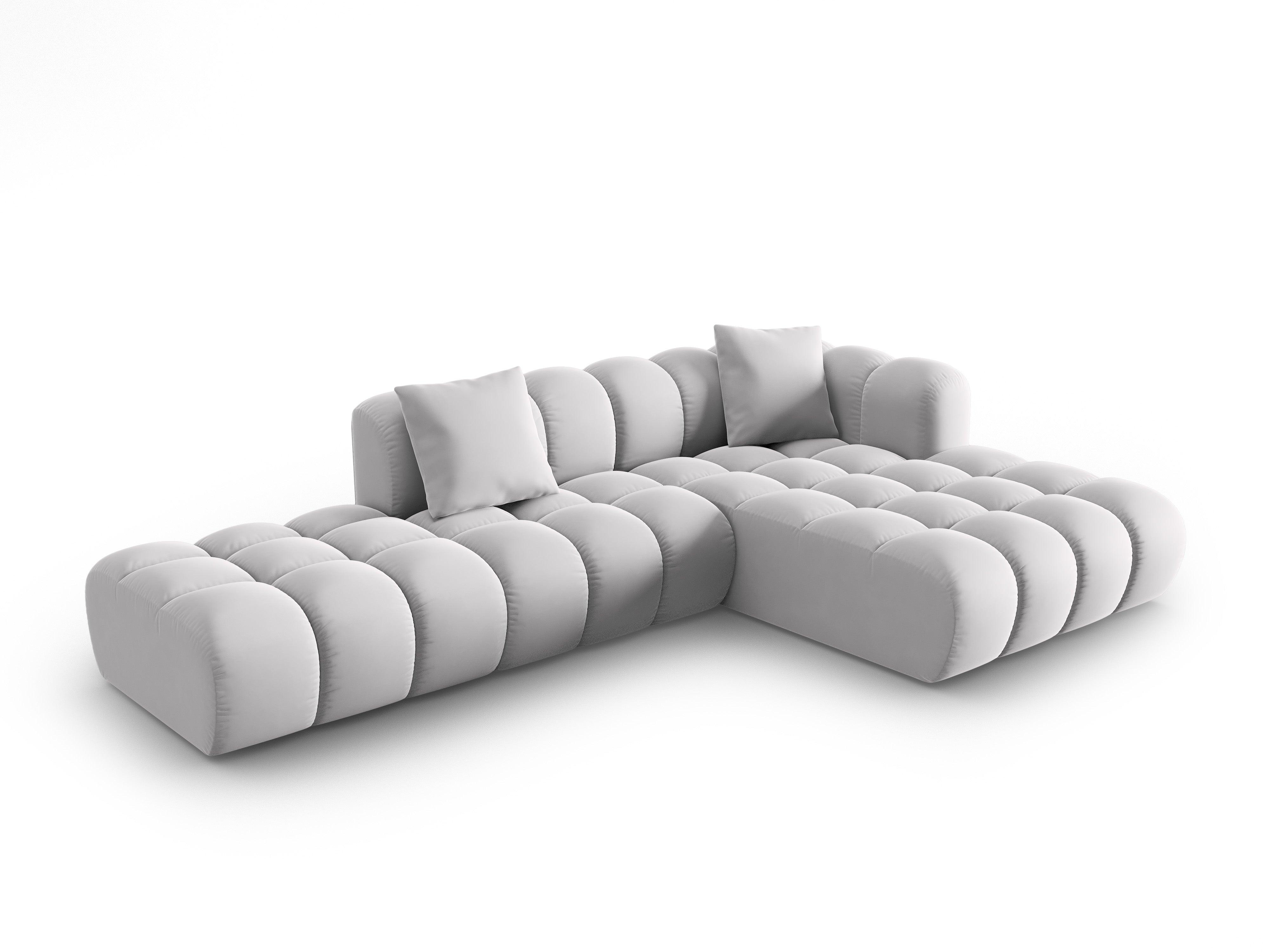 Sametový rohový gauč pro 5 osob pravý HALLEY stříbrný