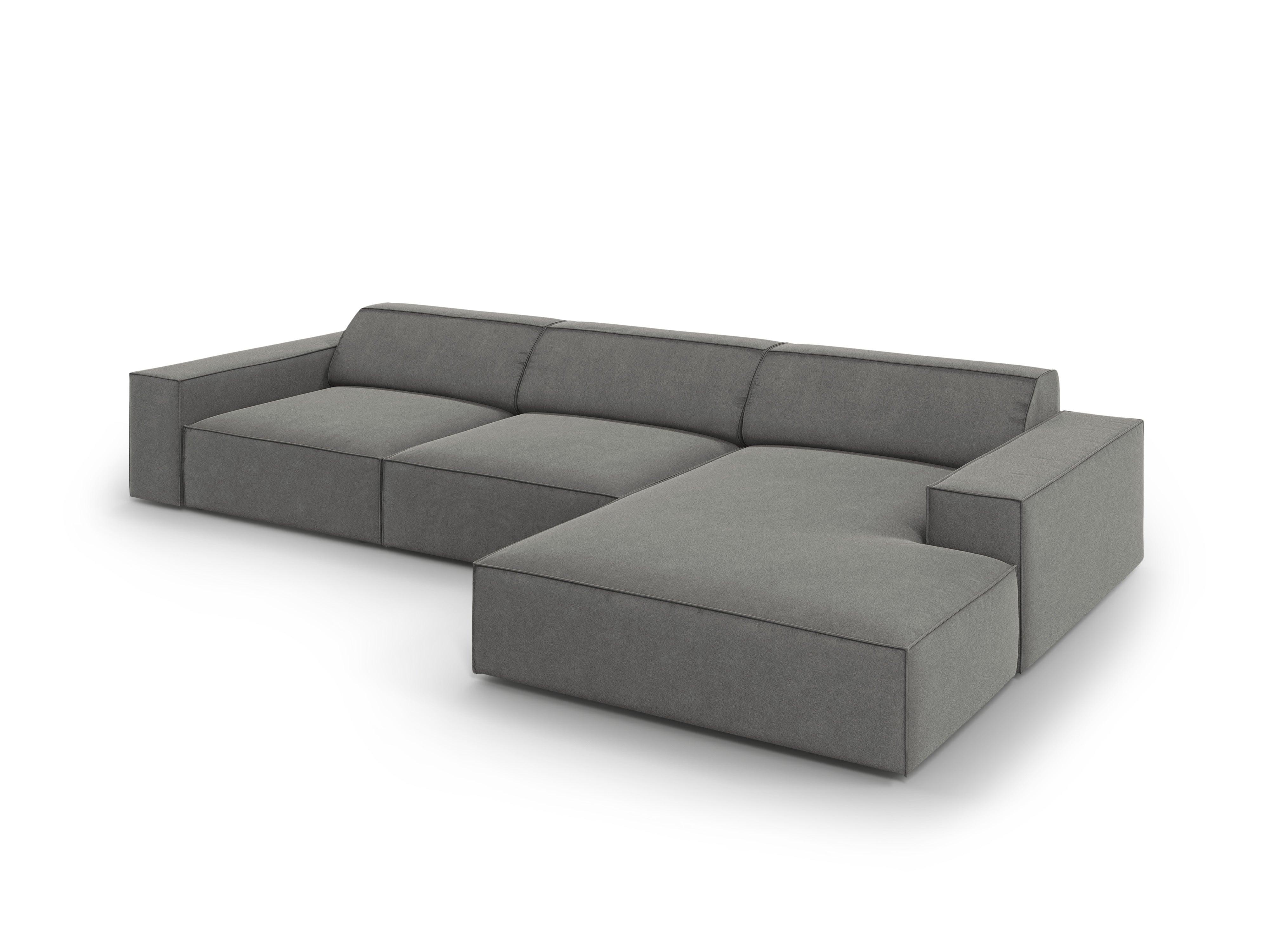 Svetle šedý pravostranný sametový rohový gauč pro 4 osoby JODIE