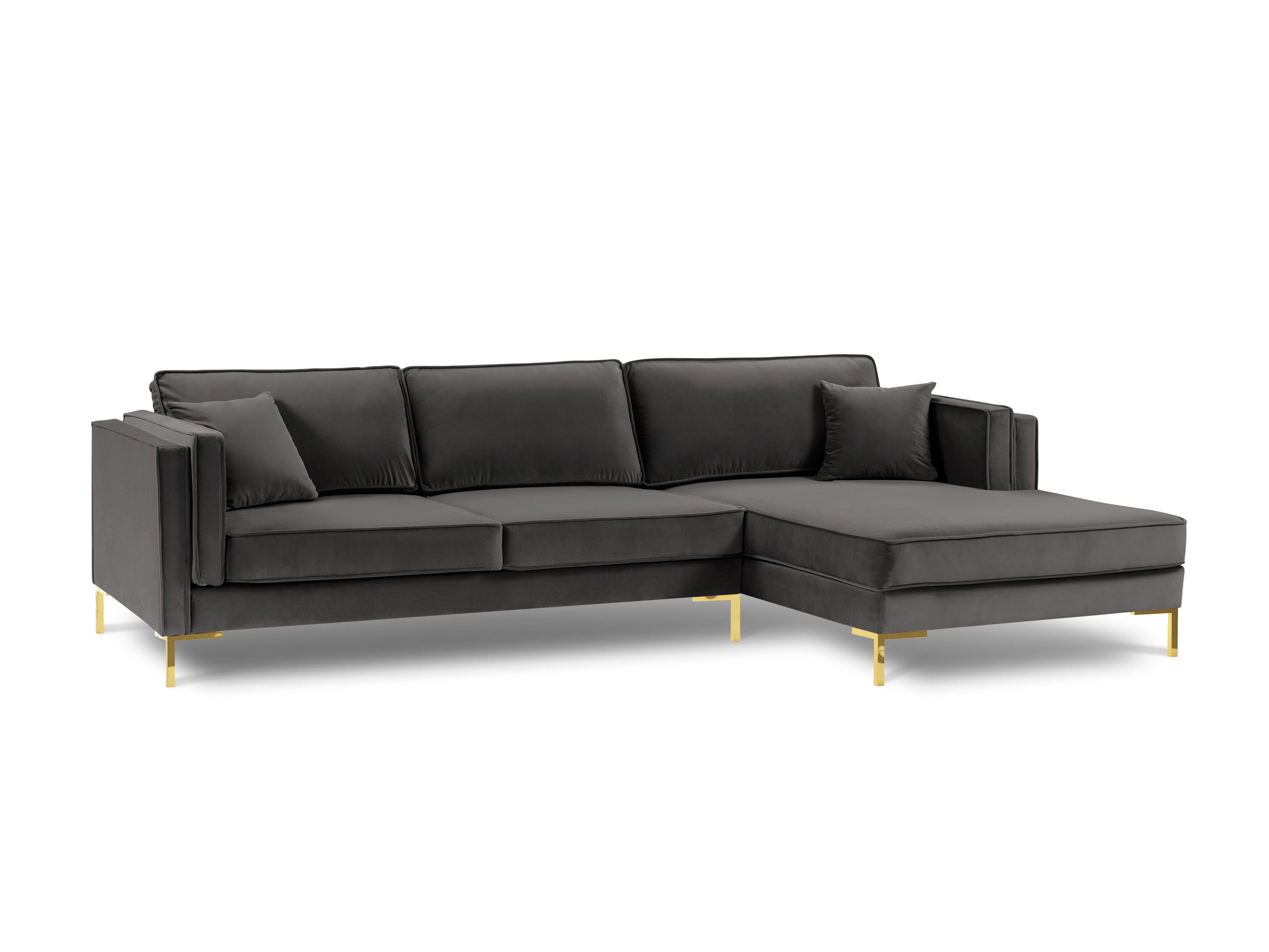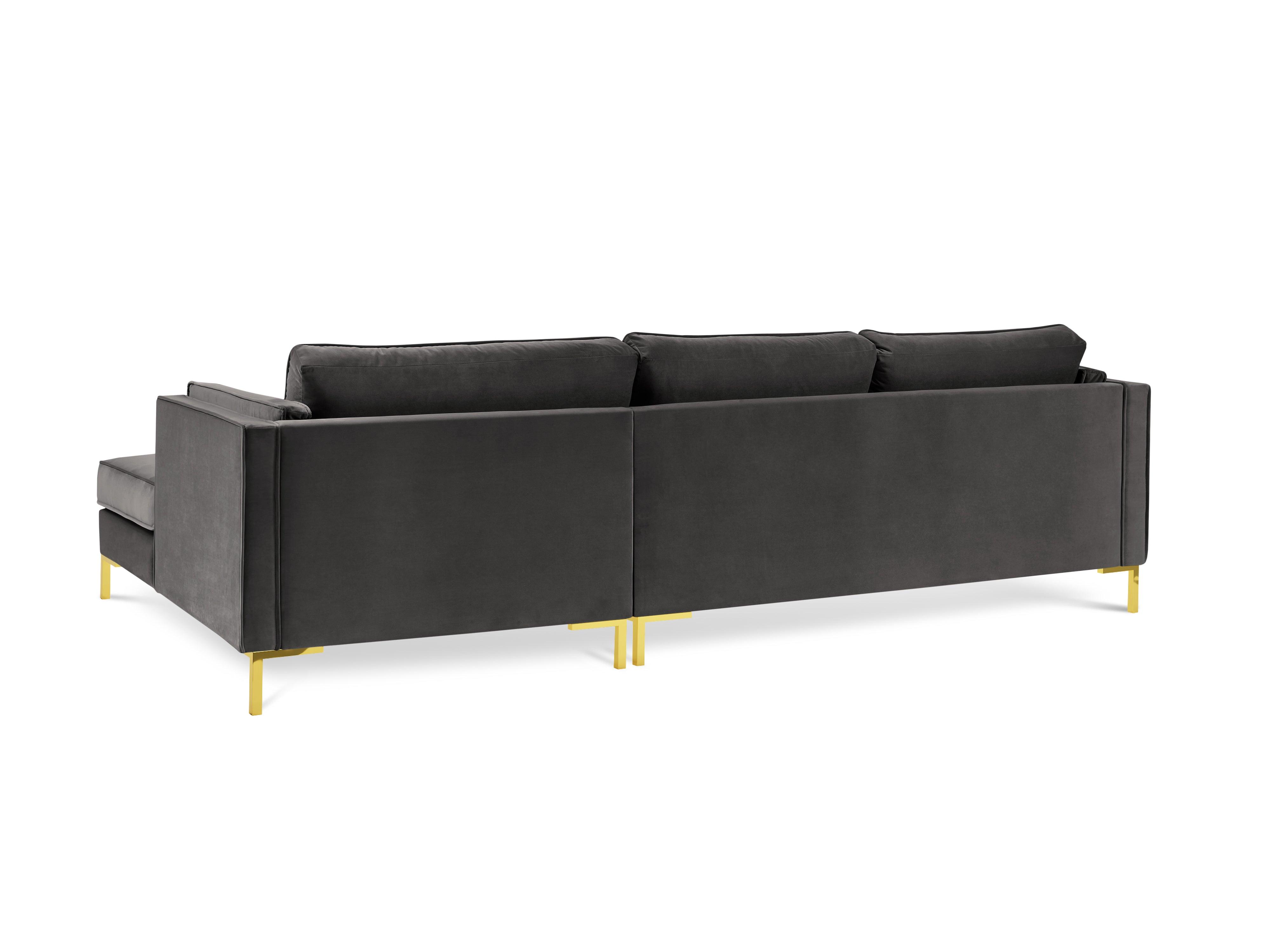Sametový rohový gauč LUIS pravostranný tmavě šedý se zlatou základnou