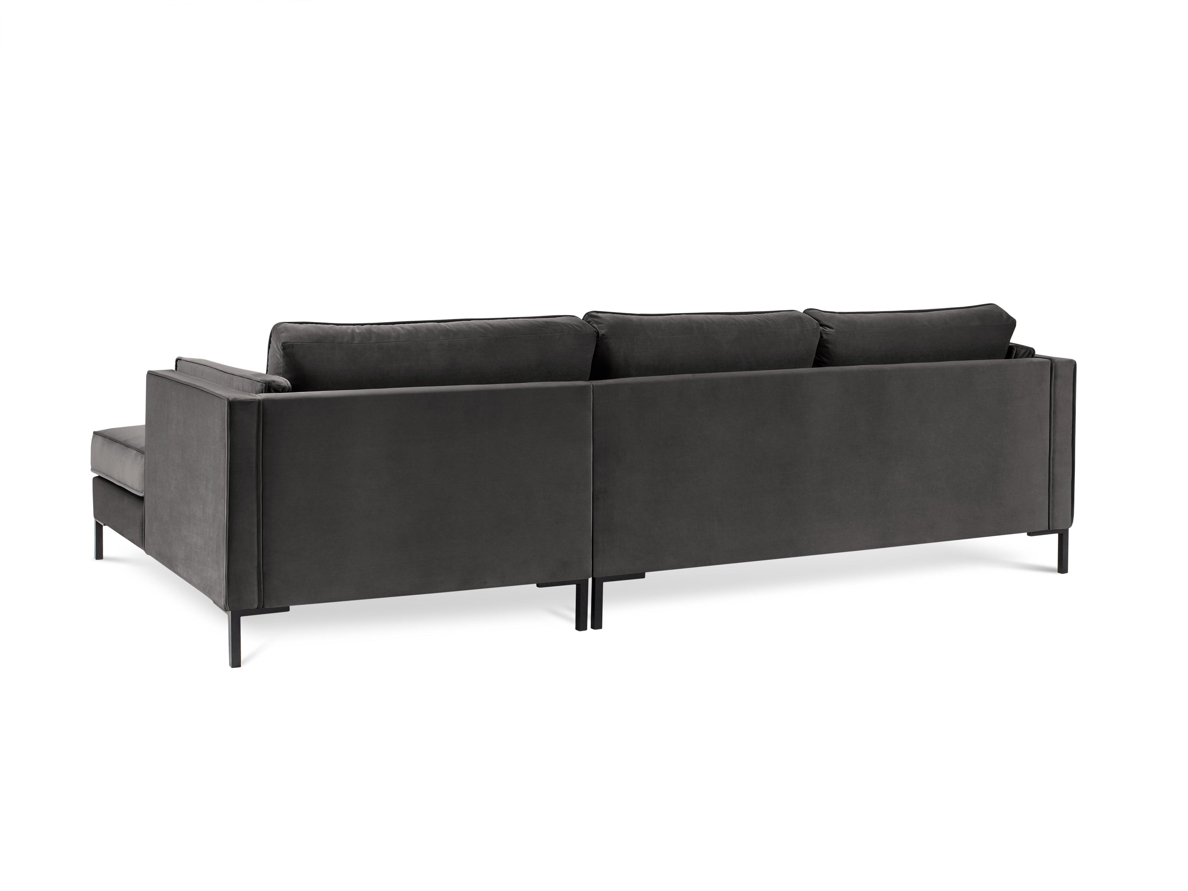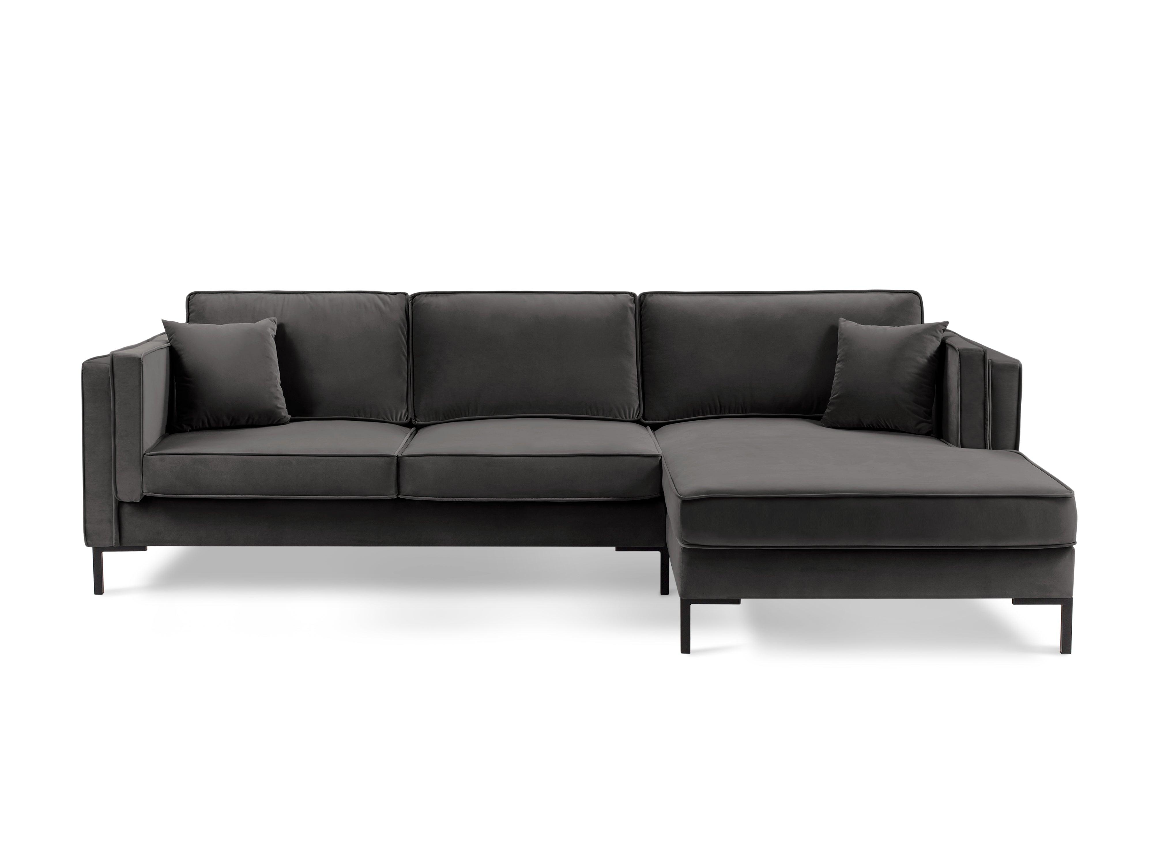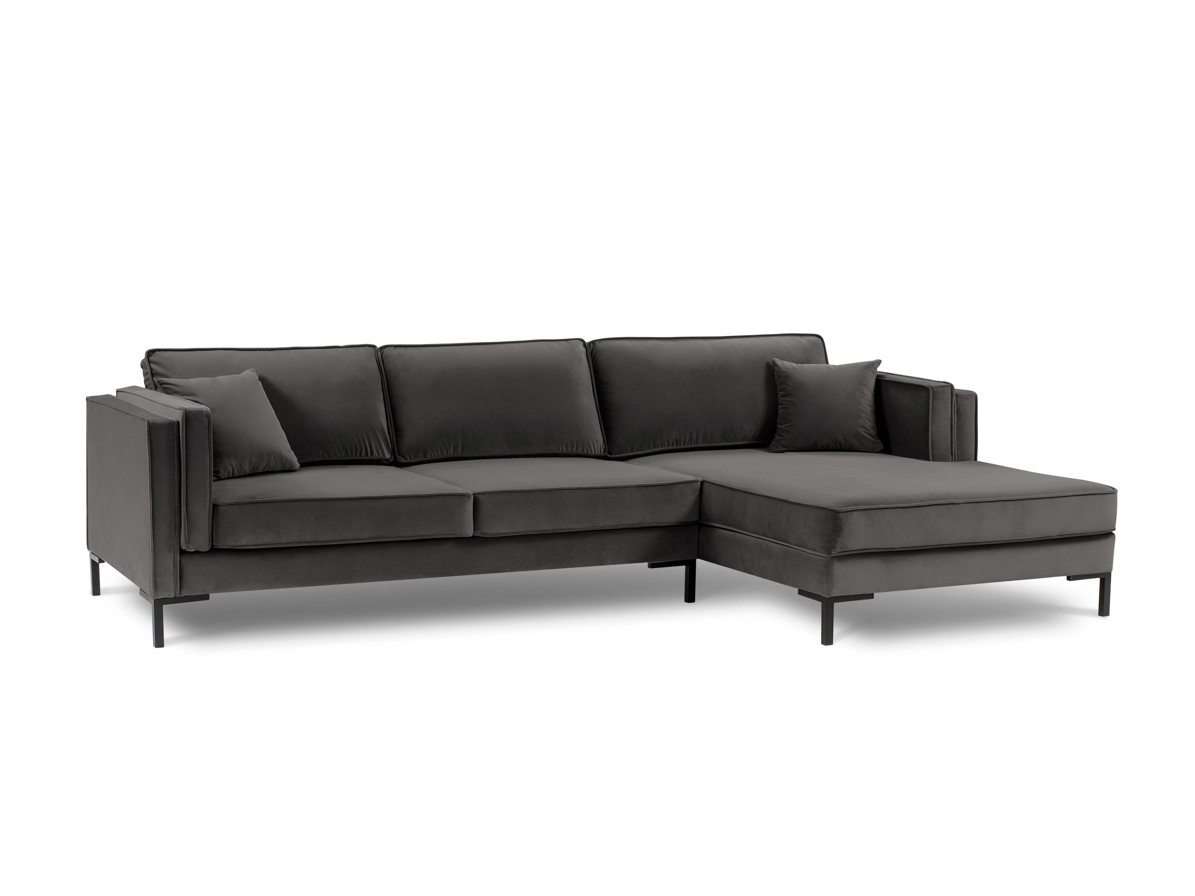 Sametový pravostranný rohový gauč LUIS tmavě šedý s černým podstavcem