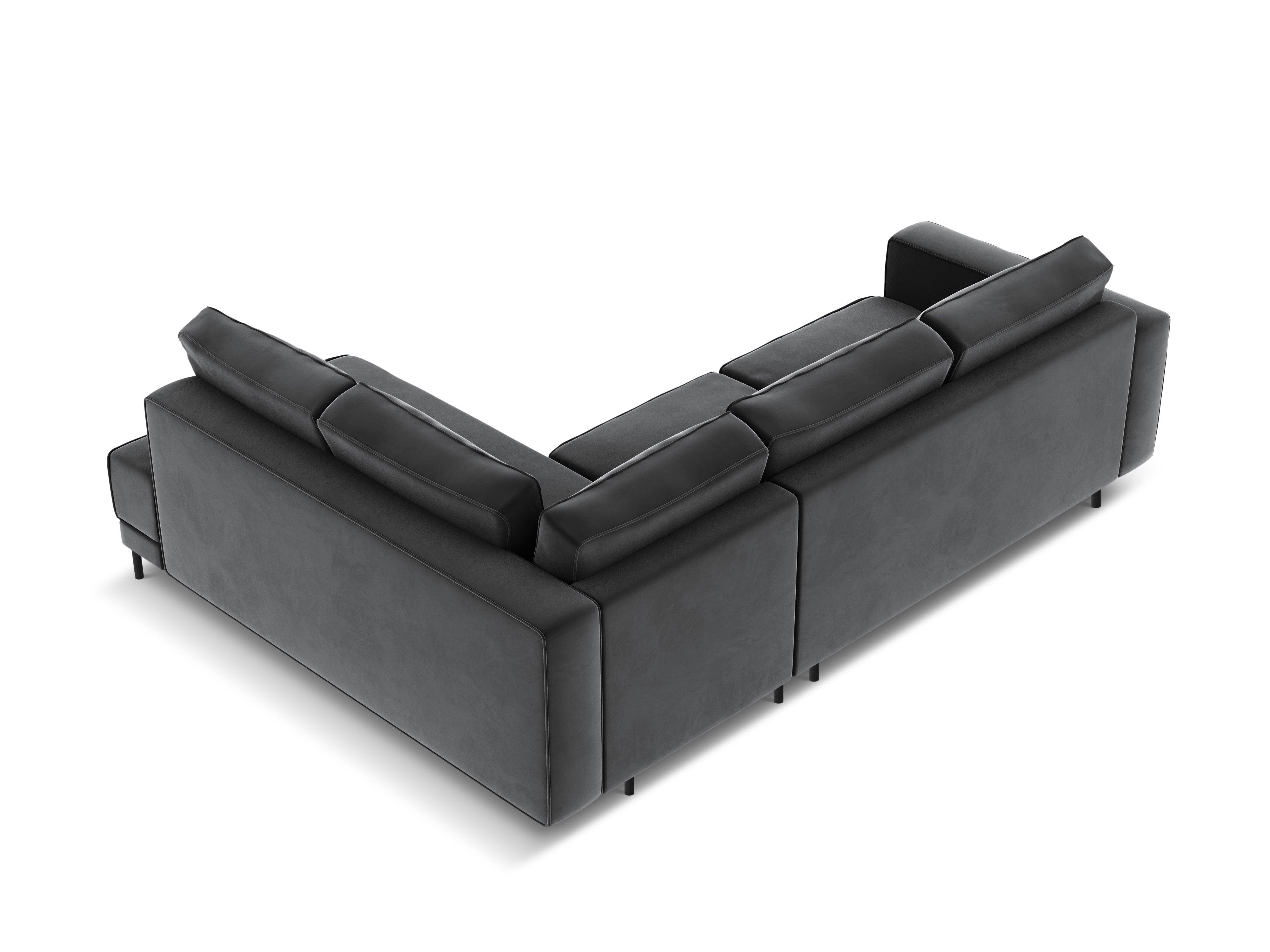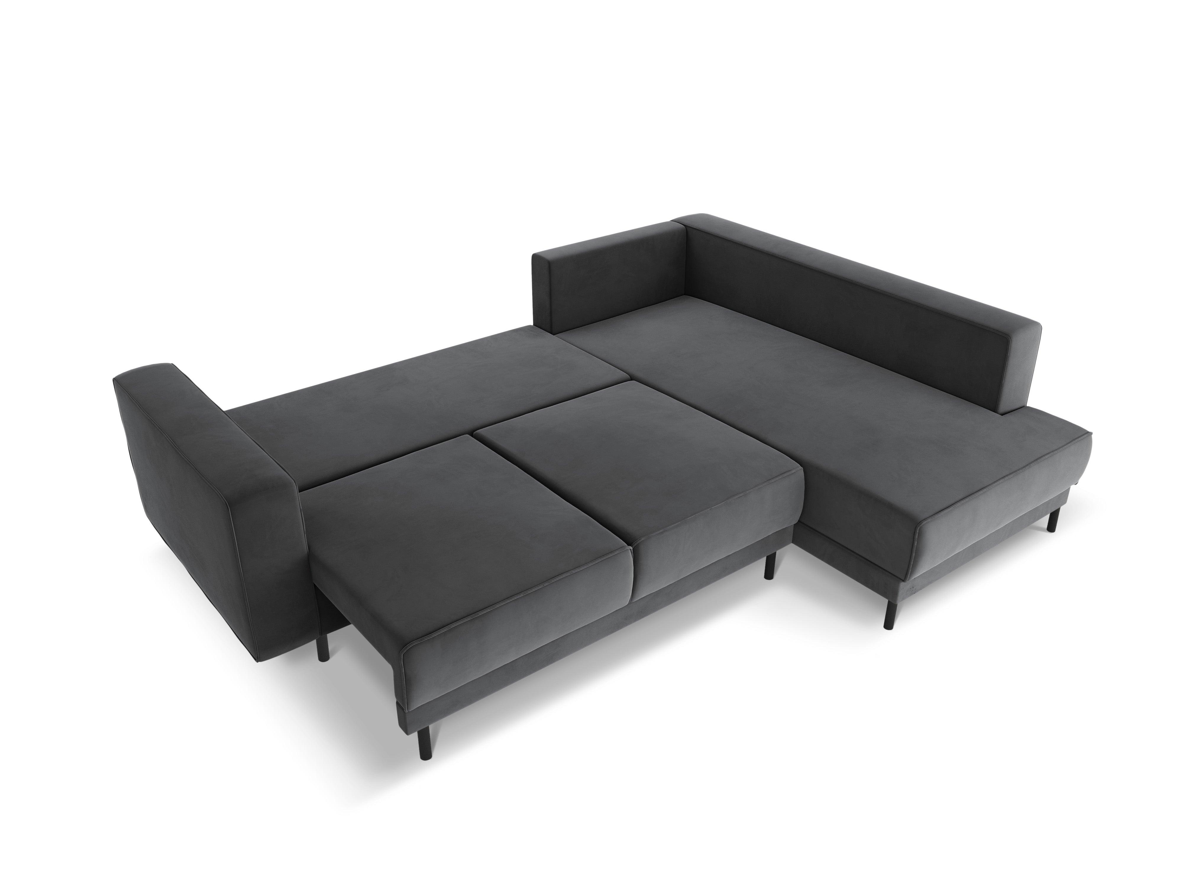 Sametový rohový gauč pravostranný s funkcí spaní CARO tmavě šedý