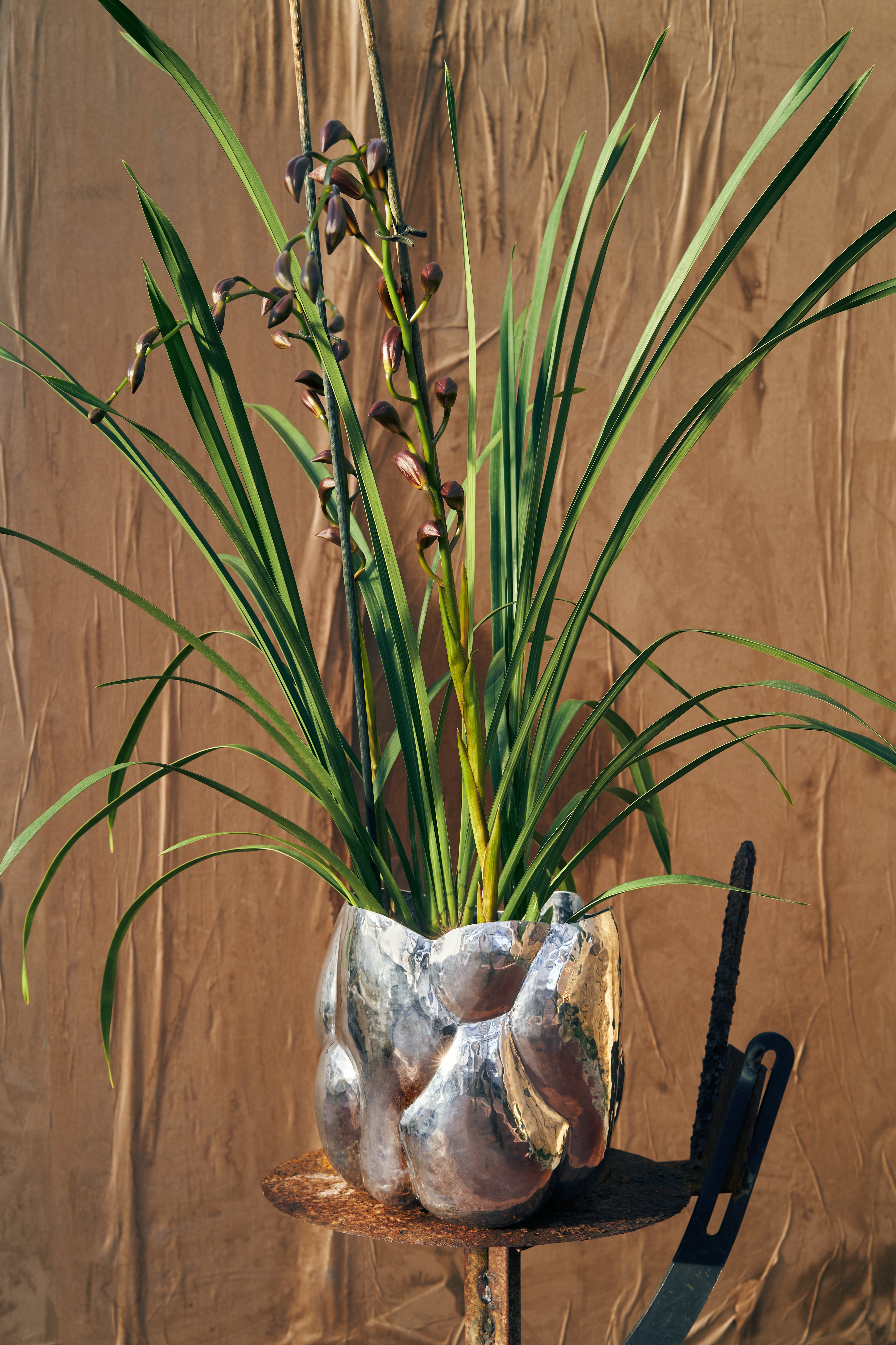 Cloud je sochařský váza vyrobená z vysoce leštěného hliníku s zrcadlovým povrchem. Každý kus je ručně vytvářen kvalifikovanými řemeslníky v Indii, což zajišťuje, že každý má jedinečné vlastnosti. Stopy po kovářství, jemné deformace a delikátní sváry zdůrazňují ruční zpracování a dodávají mu umělecký charakter.