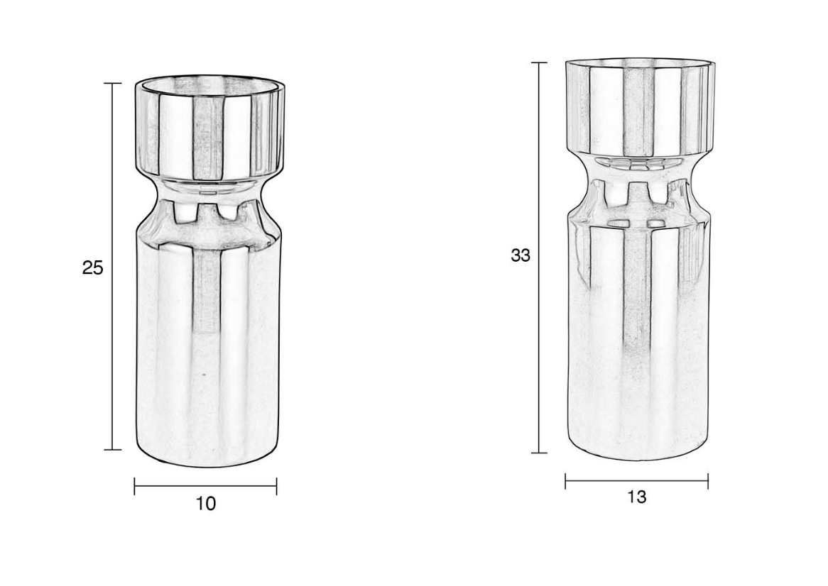 Vyrobený z hliníku, váza Glory není zcela voděodolná, proto se doporučuje umístit něco pod ní. Dostupná ve dvou různých velikostech, tato váza dodá eleganci a rafinovanost každému interiéru.