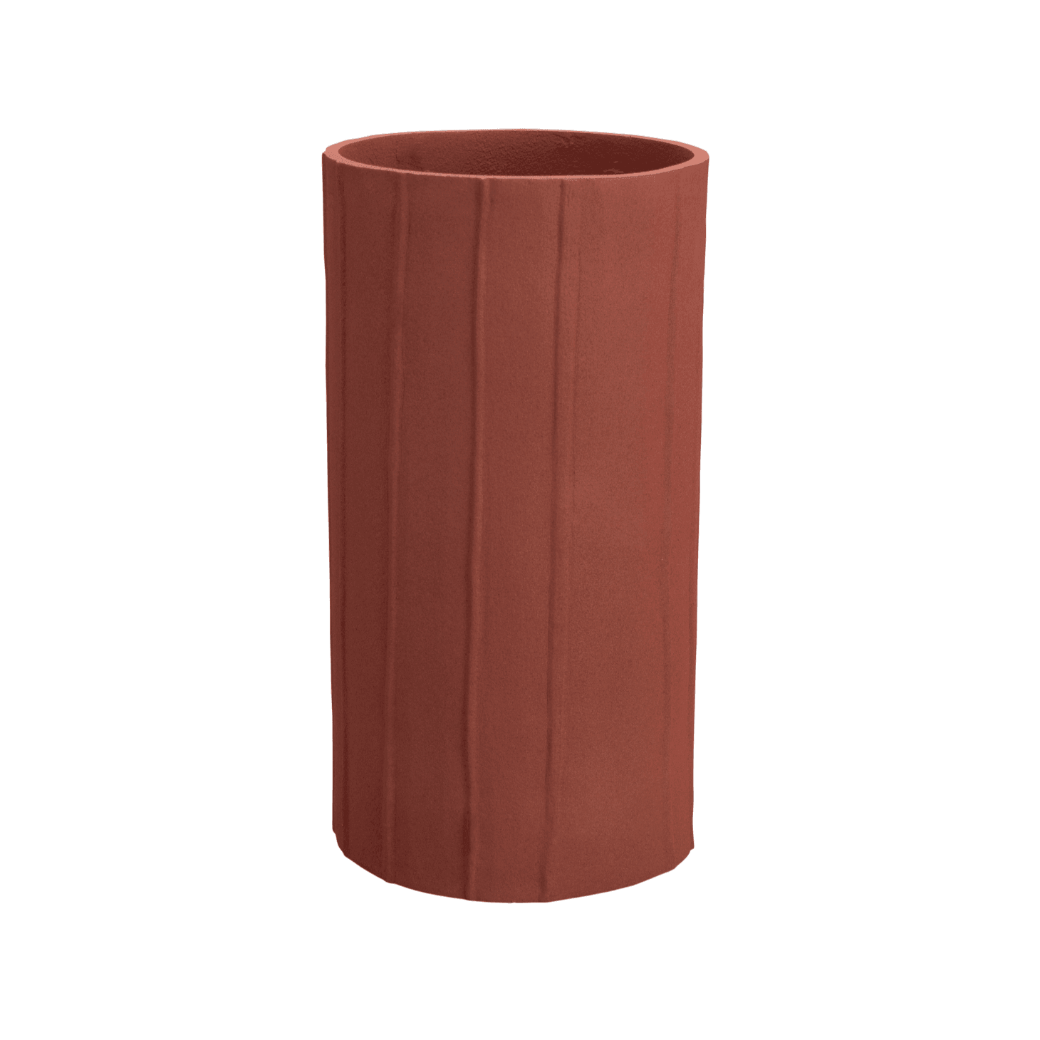 Váza Rander je k dispozici v různých barvách, ručně vyrobená z hliníku a dokončená matným povrchem, který imituje terakotu. Díky své voděodolnosti je skvělou volbou jako váza na květiny, přinášející do místnosti teplou a útulnou atmosféru.