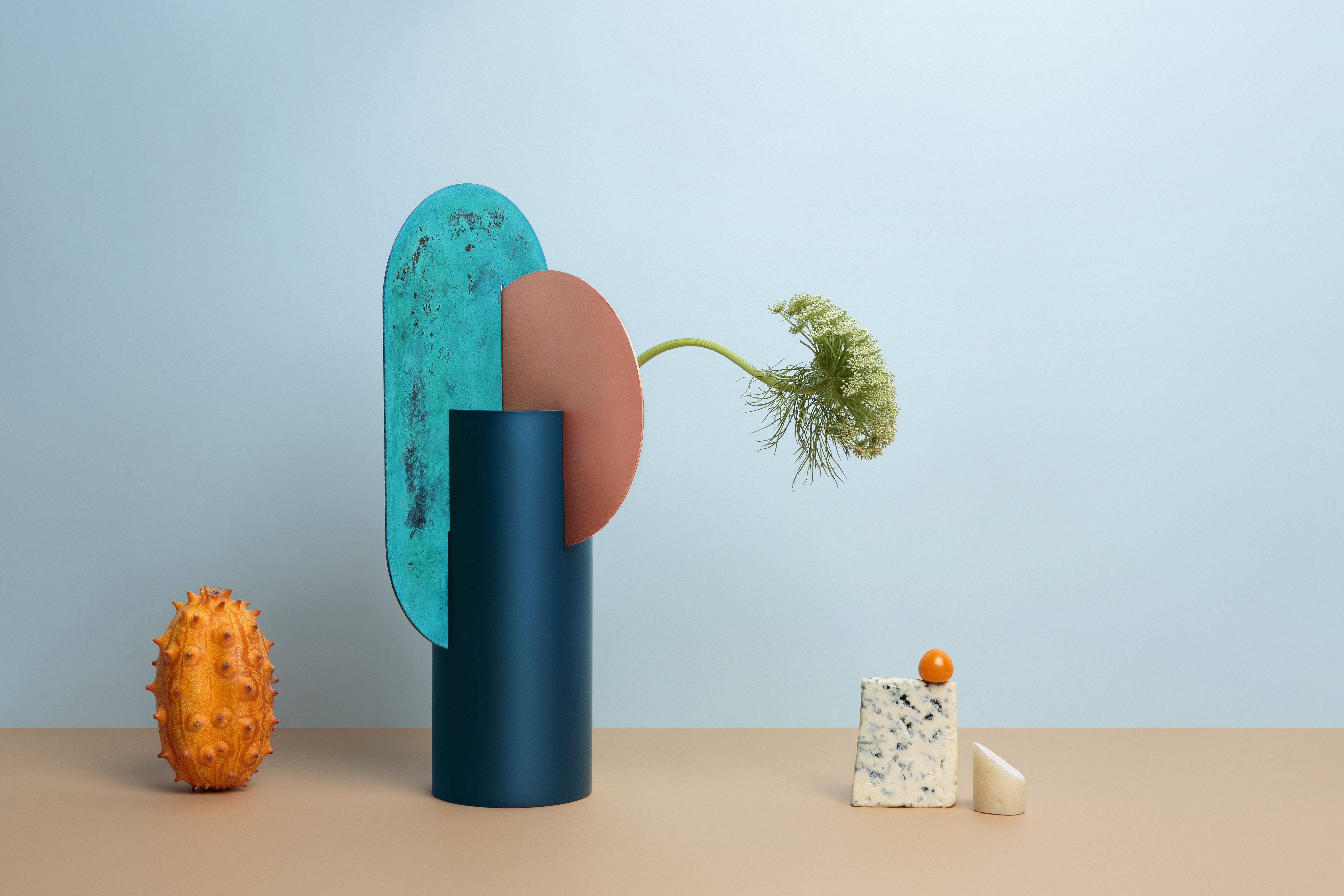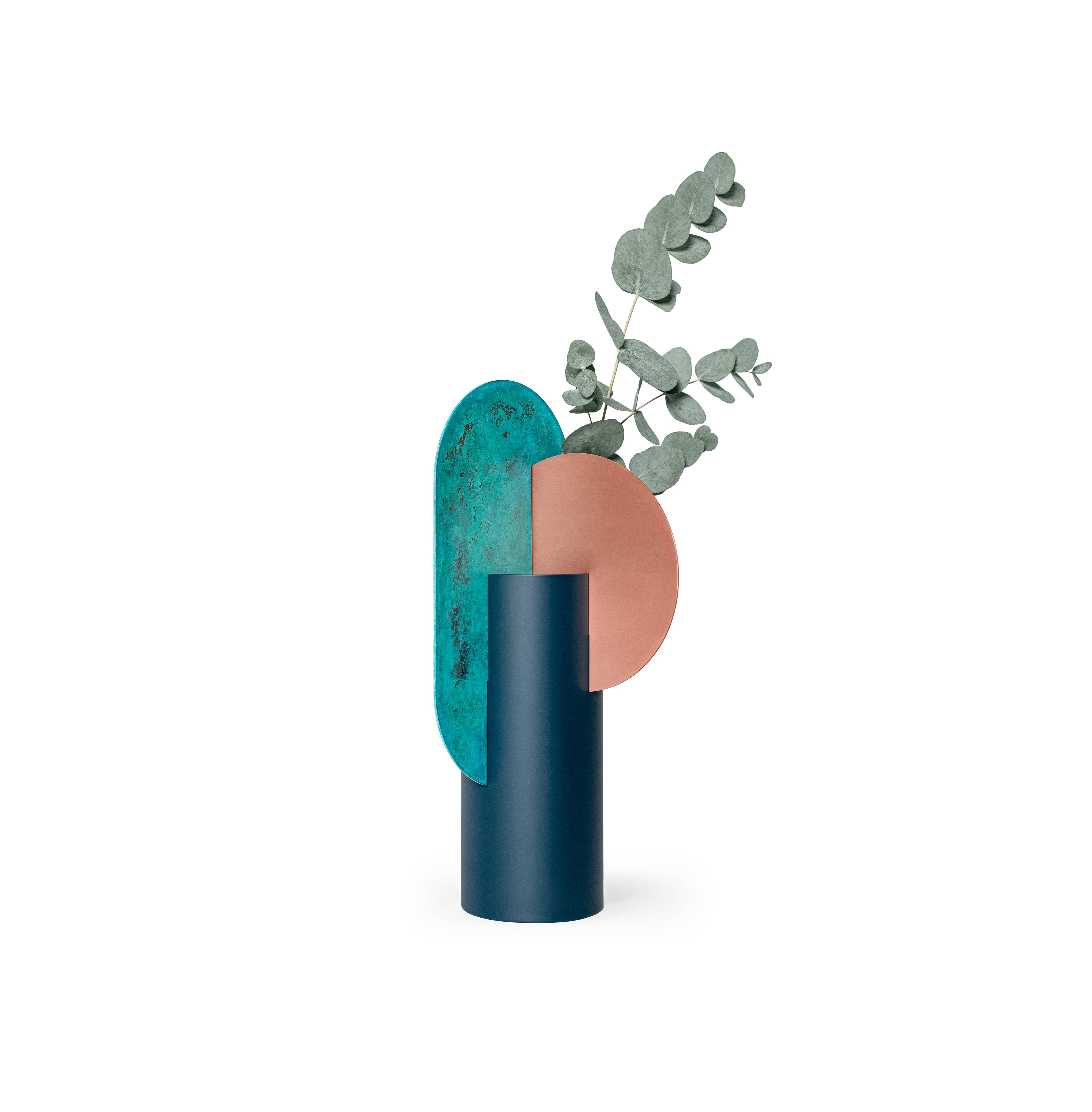 Váza YERMILOV - ČÍSLOVANÁ EDICE zelená s měděným a oxidovaným mědí