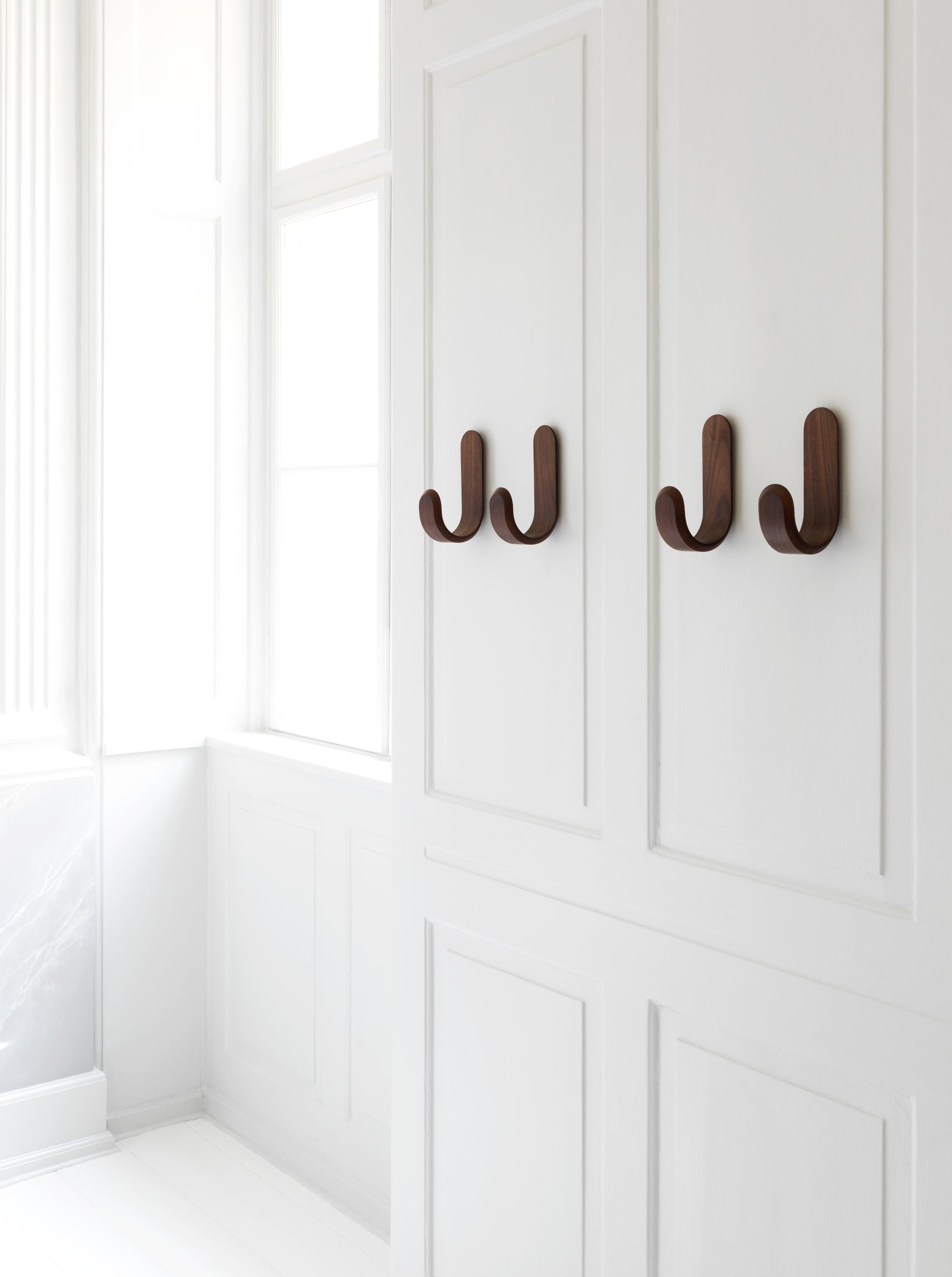 Curve to ścienny wieszak w klasycznym kształcie litery J, który łączy prostotę z naturalnym urokiem drewna. Wykonany z orzecha, wyróżnia się ciepłą kolorystyką i wyraźnym usłojeniem, dodając wnętrzu elegancji i przytulności. Jego intuicyjna forma sprawia, że idealnie nadaje się do zawieszania ubrań, ręczników czy toreb w stylowy sposób.