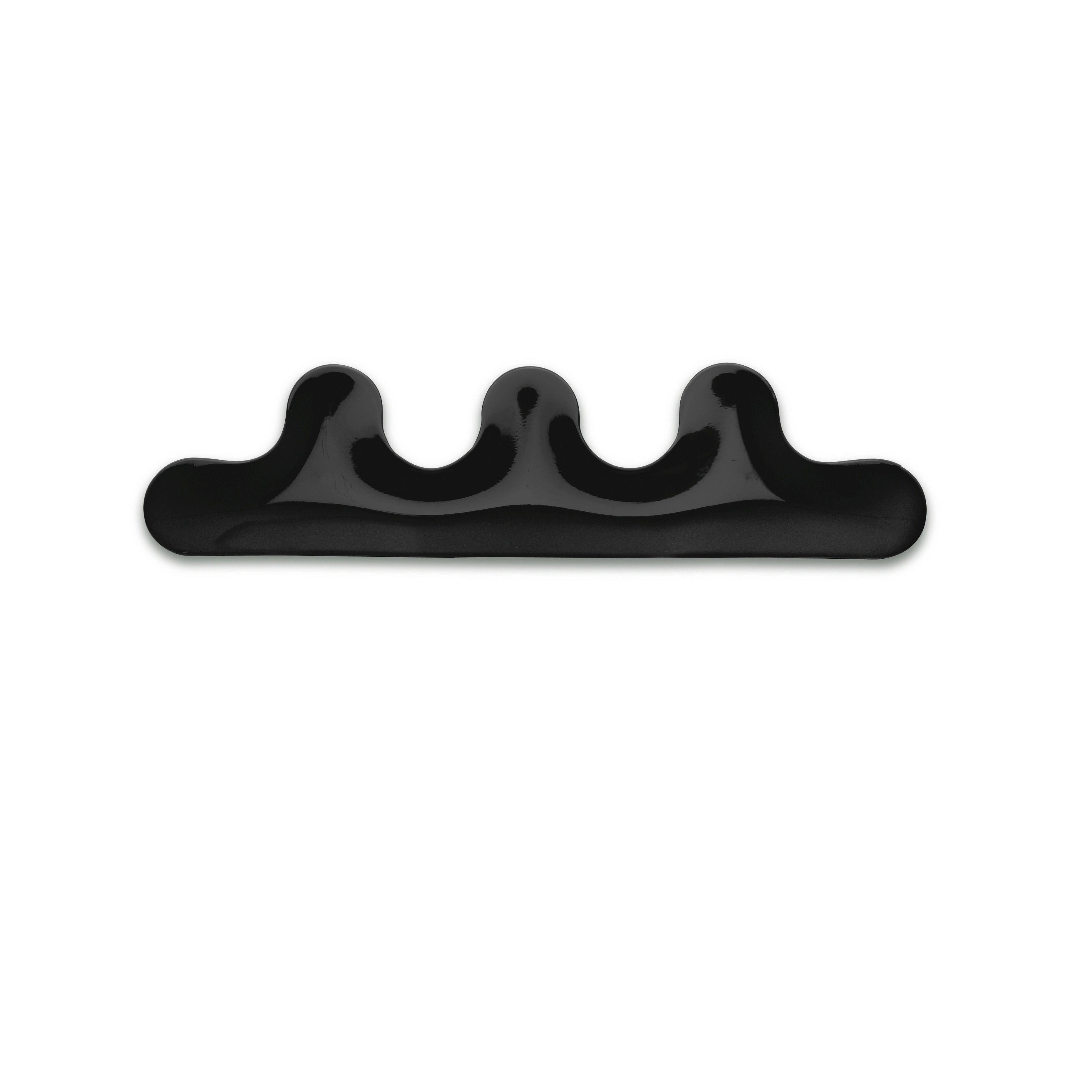 Hanger Kamm v lesklé černé barvě je neobyčejný vlnící se příběh připevněný na stěně. Tento univerzální objekt je vybaven jedinečnými výstupky, které mu dodávají charakter a činí ho výjimečným. Kamm nejenže plní funkci praktického věšáku, ale také obohacuje prostor tím, že vytváří zajímavou naraci s předměty, které na něm visí.