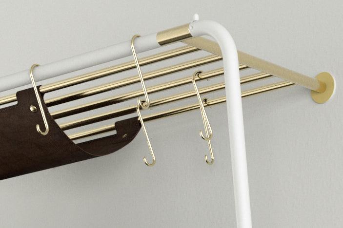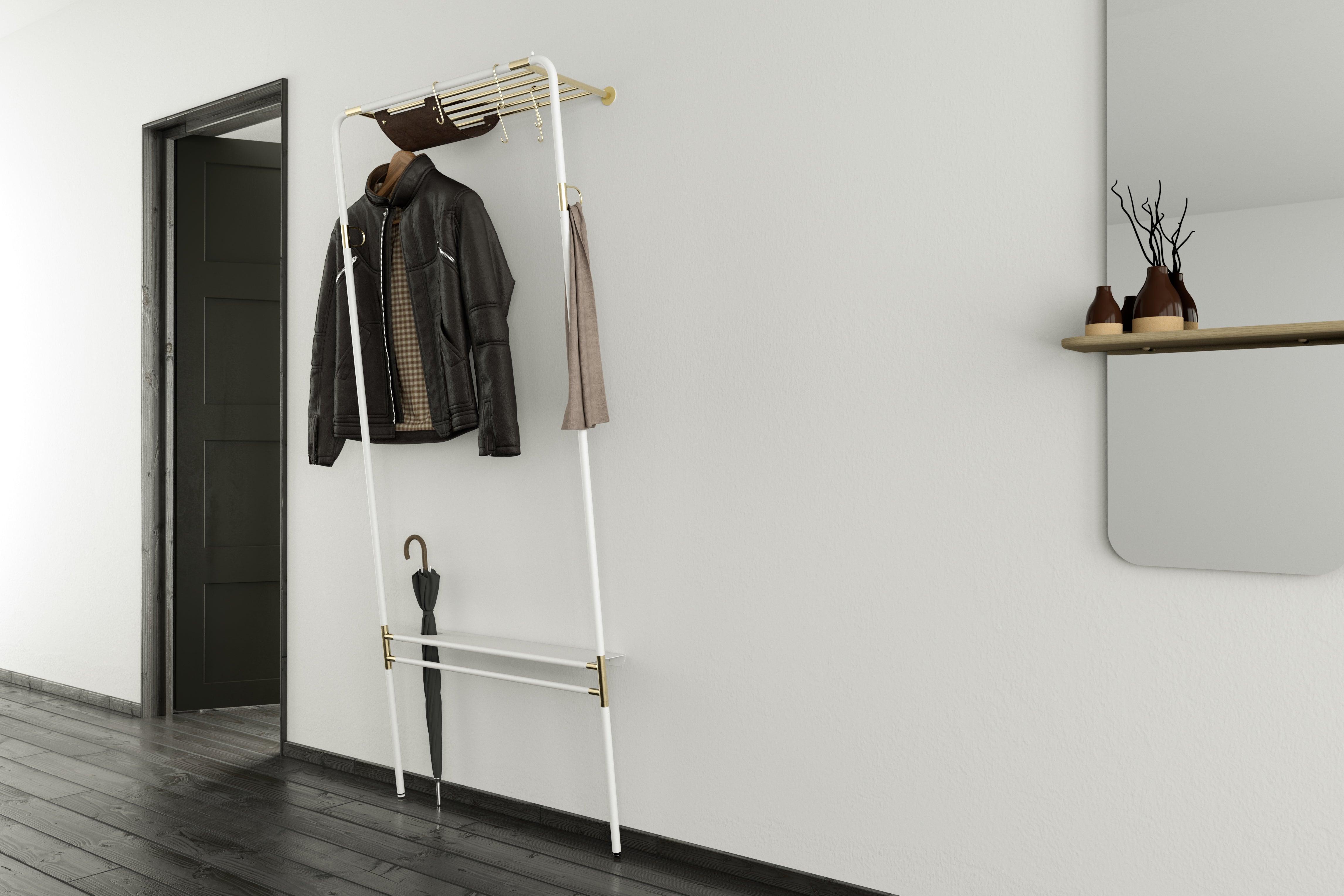 Hanger na oblečení Lean On Me byl navržen tak, aby umožnil pohodlné uložení všech nezbytných věcí na čerstvém vzduchu, přičemž maximálně využívá dostupný prostor. Jeho inovativní design mu umožňuje opírat se pod úhlem o zeď u základny, což znamená, že zabírá minimální množství místa na podlaze.