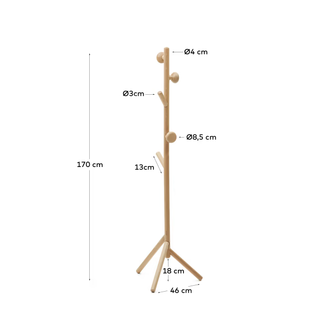 Hanger Nadue, od renomovaného designérského týmu Kave Home, je více než jen funkční prvek - je to pravá óda na eleganci organických tvarů v designu. Překvapivě harmonické spojení pěti vyjímatelných háčků a tří nakloněných nohou mu dodává jedinečný vzhled, který je jak atraktivní, tak funkční.